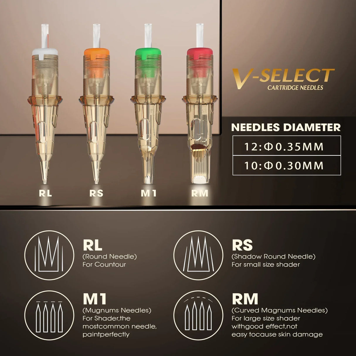 Mixed Sizes Ez V-Select Cartridge Tattoo Needle - 12-3 5RL 7RS 7M1 9RM / VIP Price is backordered and will ship as soon as it is back in stock.