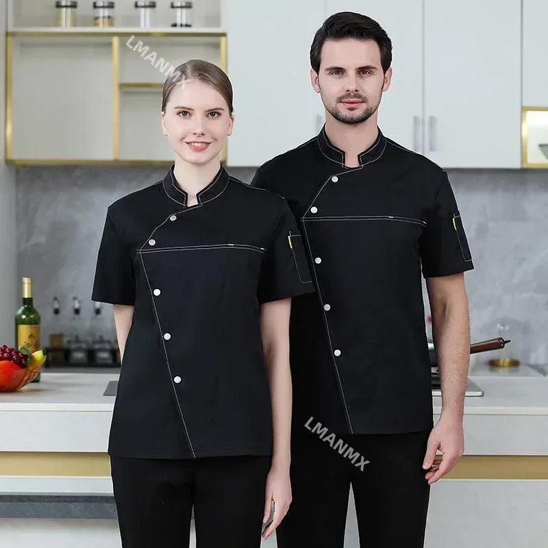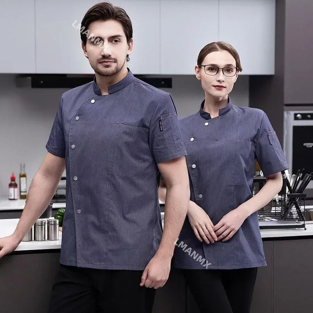 Unisex Chef Jacket Short Sleeve Kitchen Cook Coat