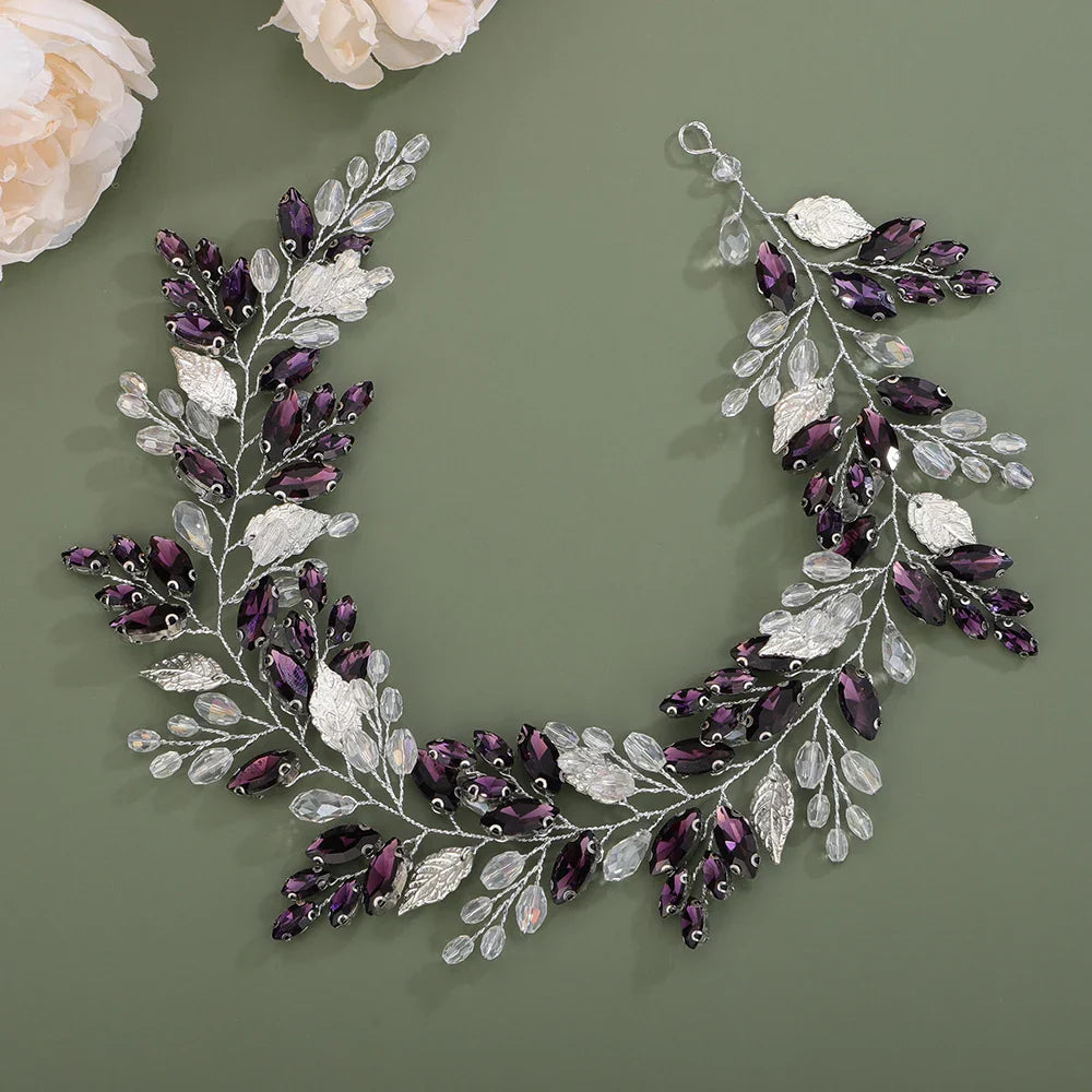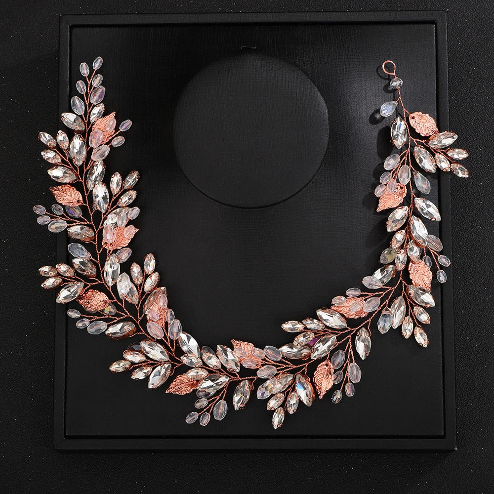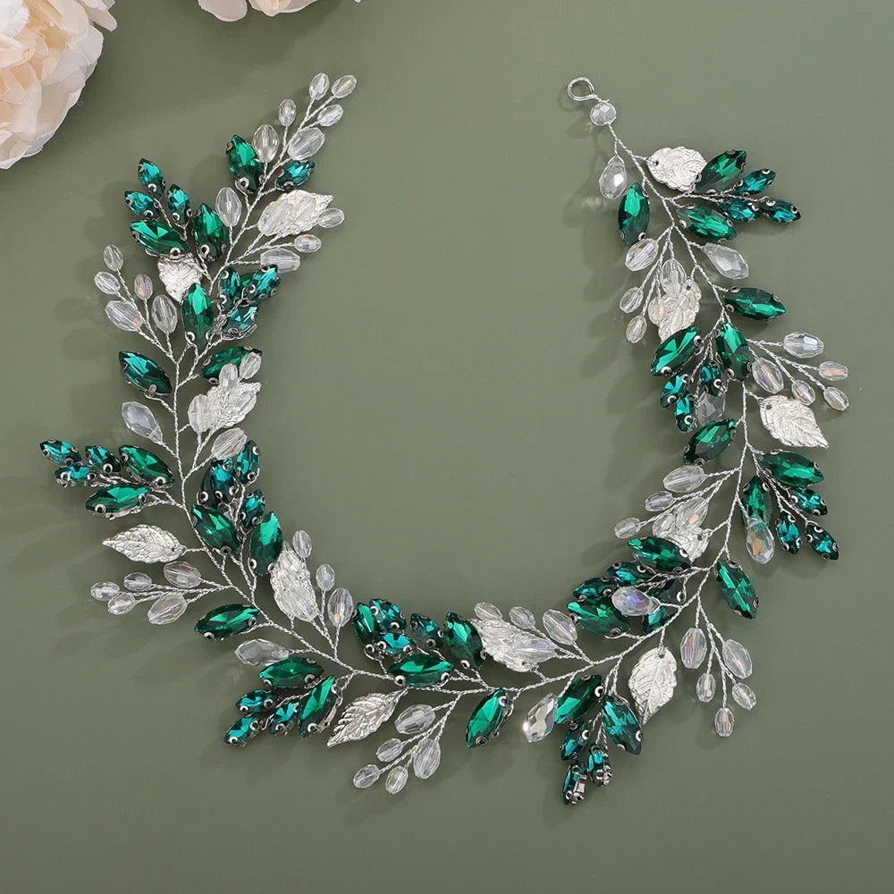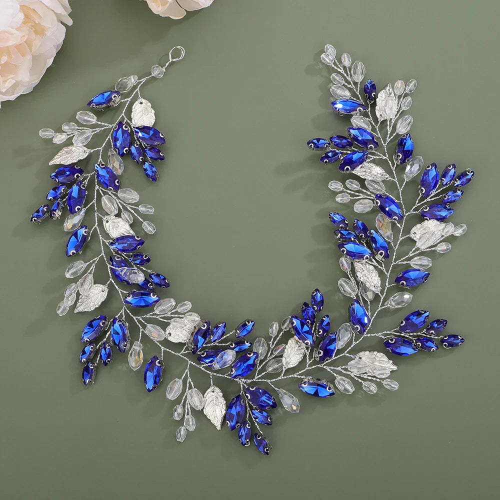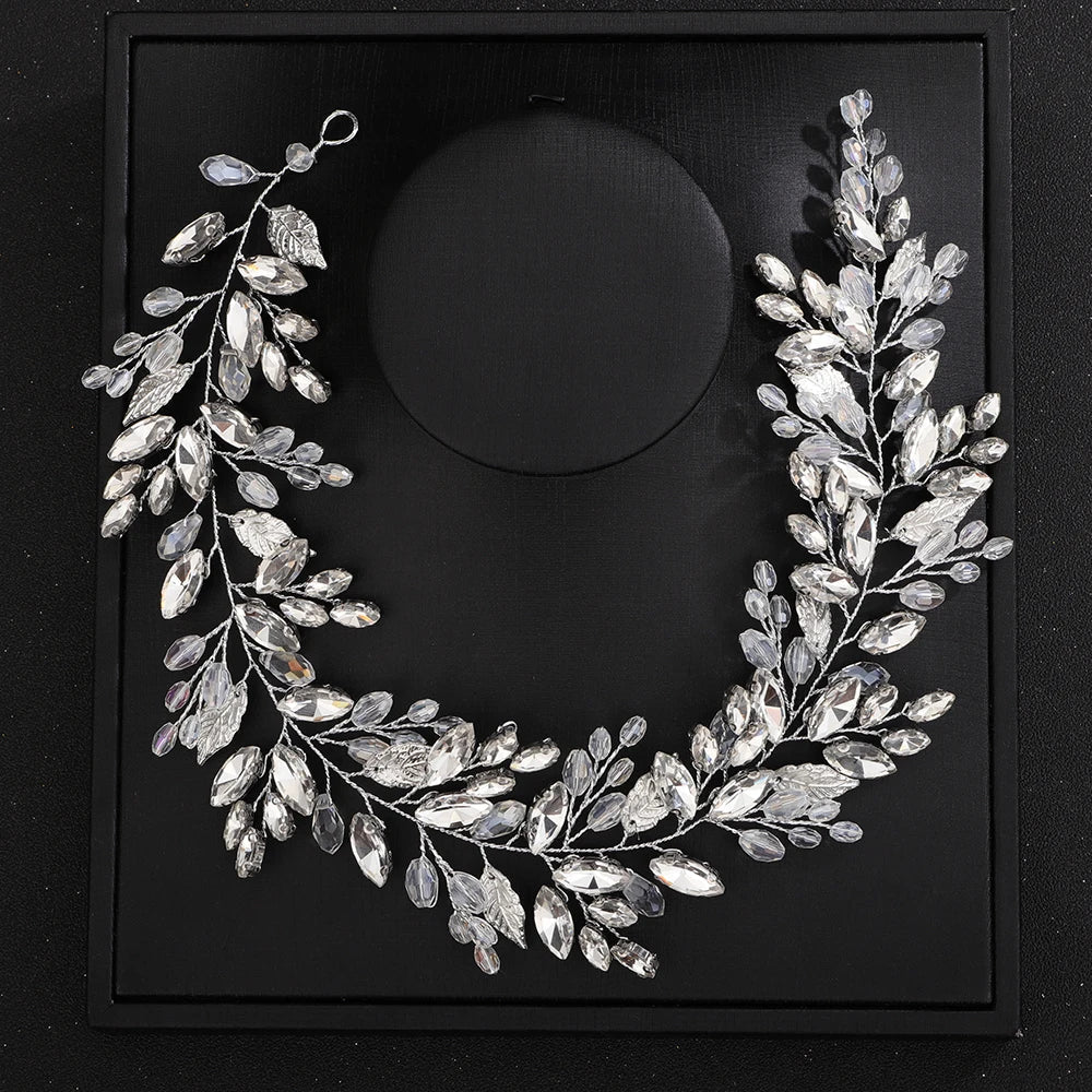 Luxury Rhinestone Silver Headband For Bridal Crystal Leaves