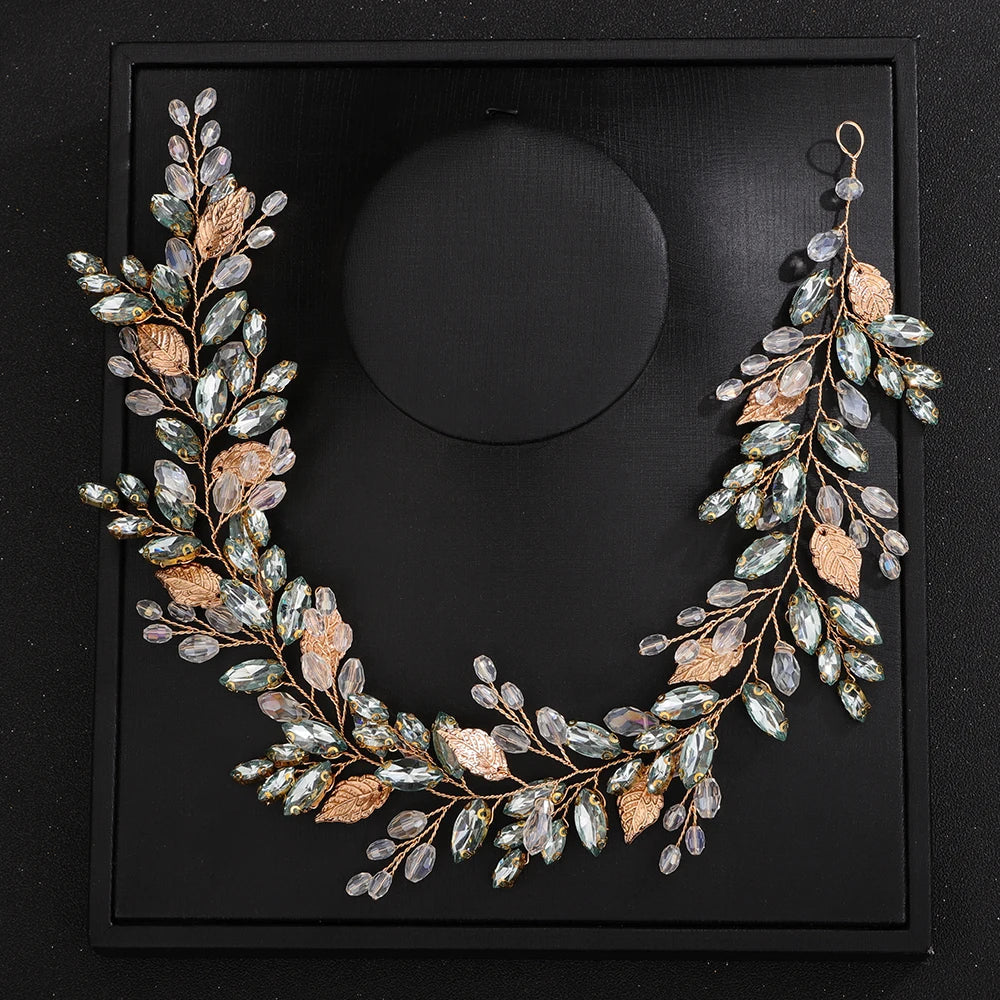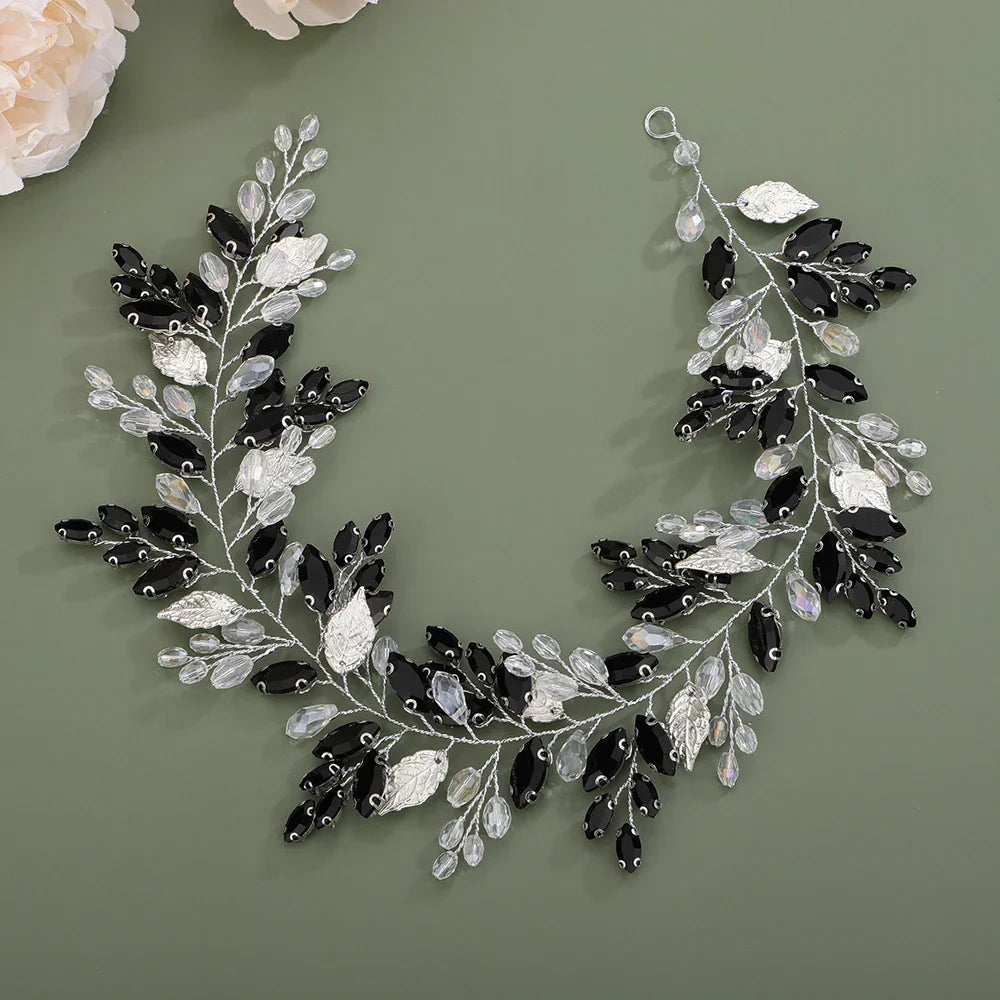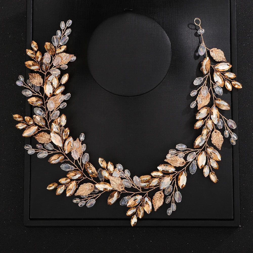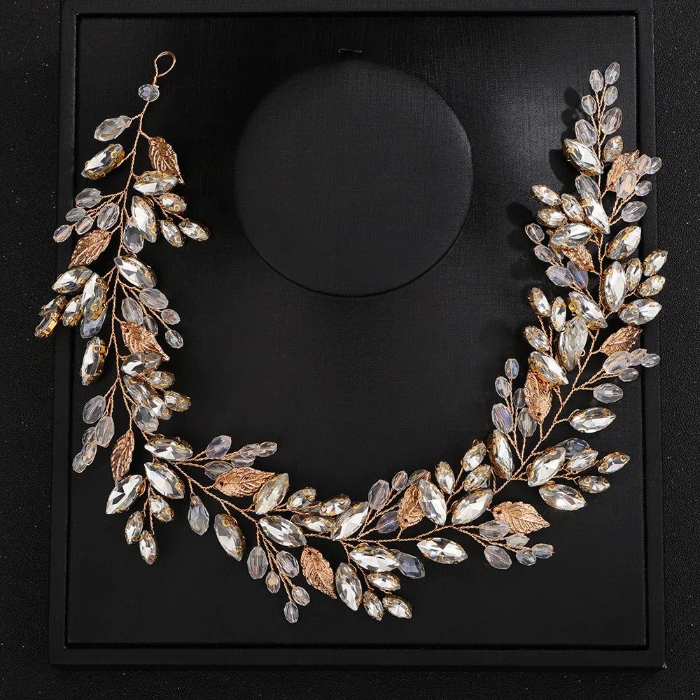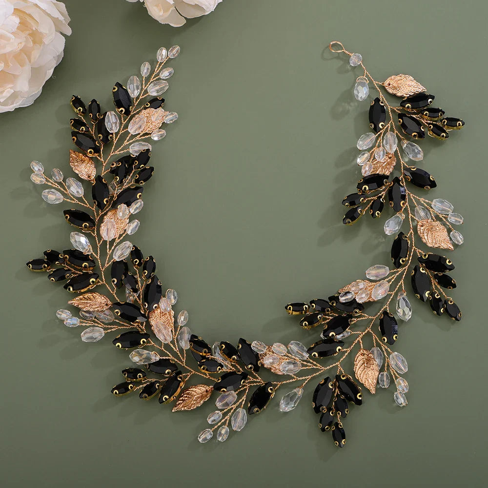 Luxury Rhinestone Silver Headband For Bridal Crystal Leaves - Gold Black / VIP Price is backordered and will ship as soon as it is back in stock.