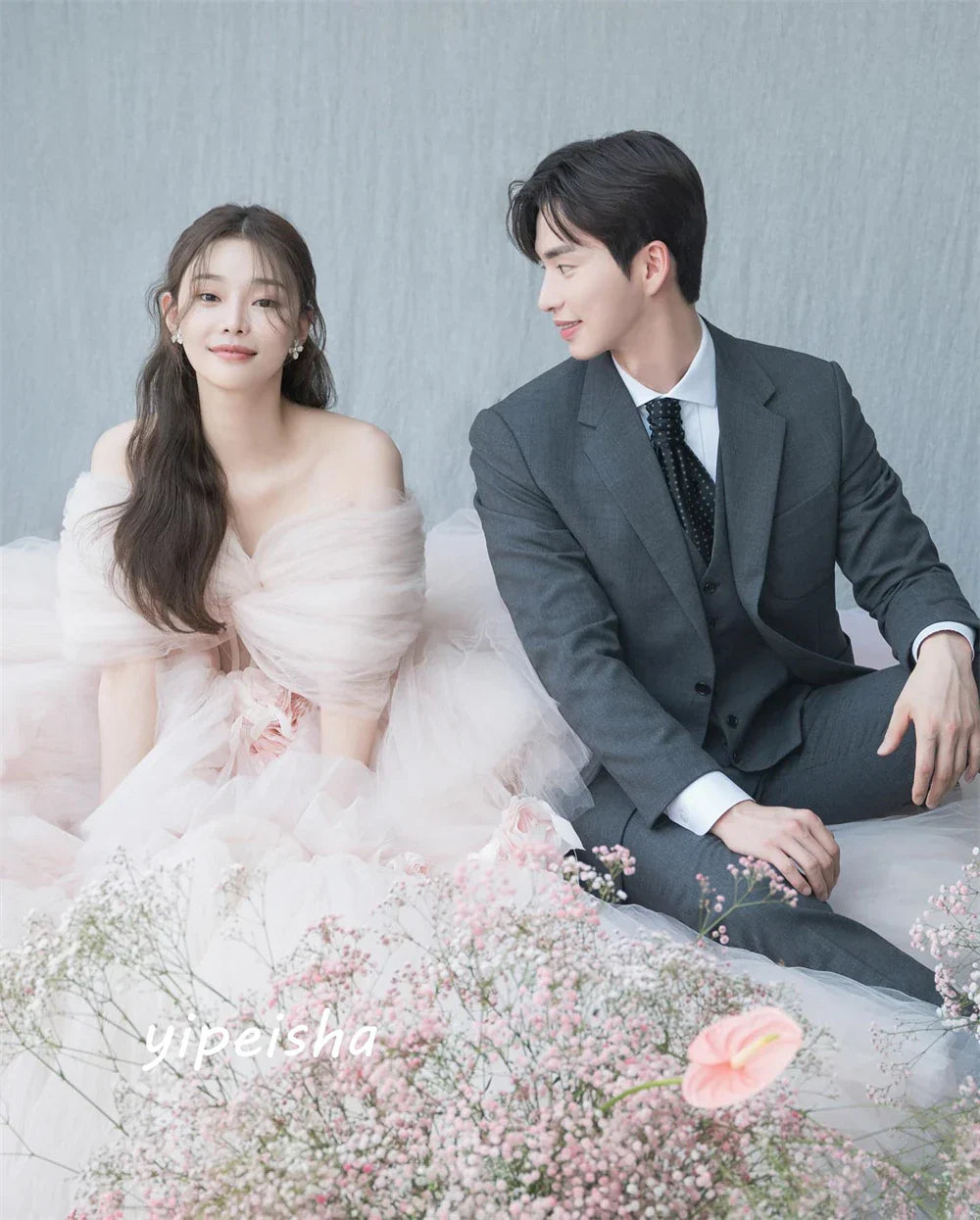 Yipeisha Intricate Exquisite Strapless Ball Gown Flower Draped