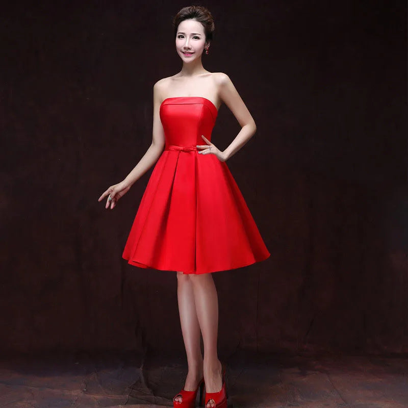 Sexy Strapless Wedding Bridesmaid Party Dress Elegant Prom