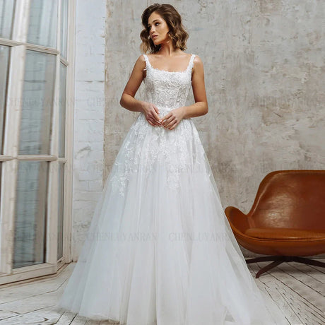 $97.84$195.68Unit price /Unavailable+1Ivory Applique Wedding Dress - Square Collar Sleeveless Backless 2024