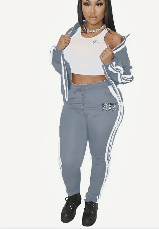 Ladies Tracksuits Piece Set Sports Suit Zipper V