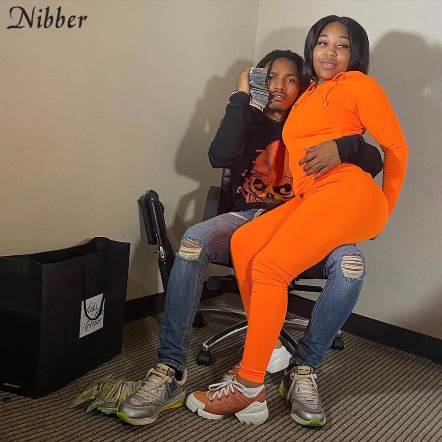 Nibber Sporty Casual Long Sleeve Hooded Zipper Solid