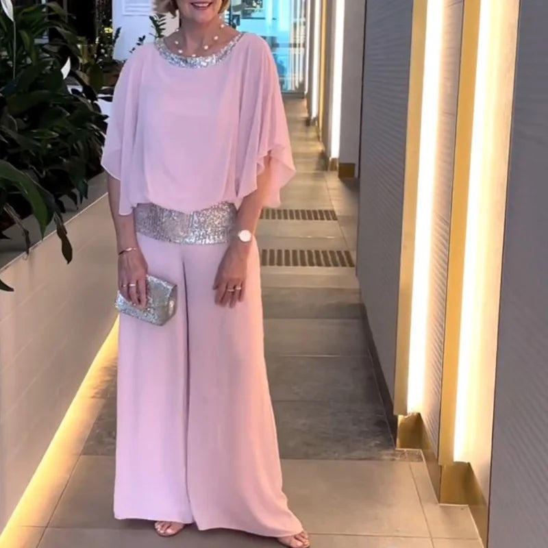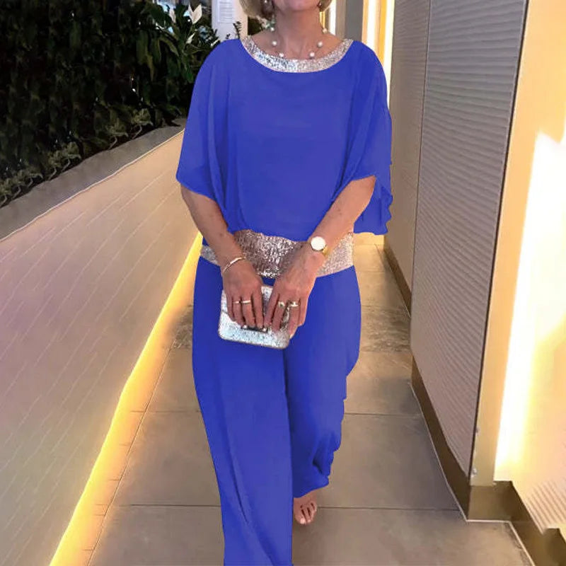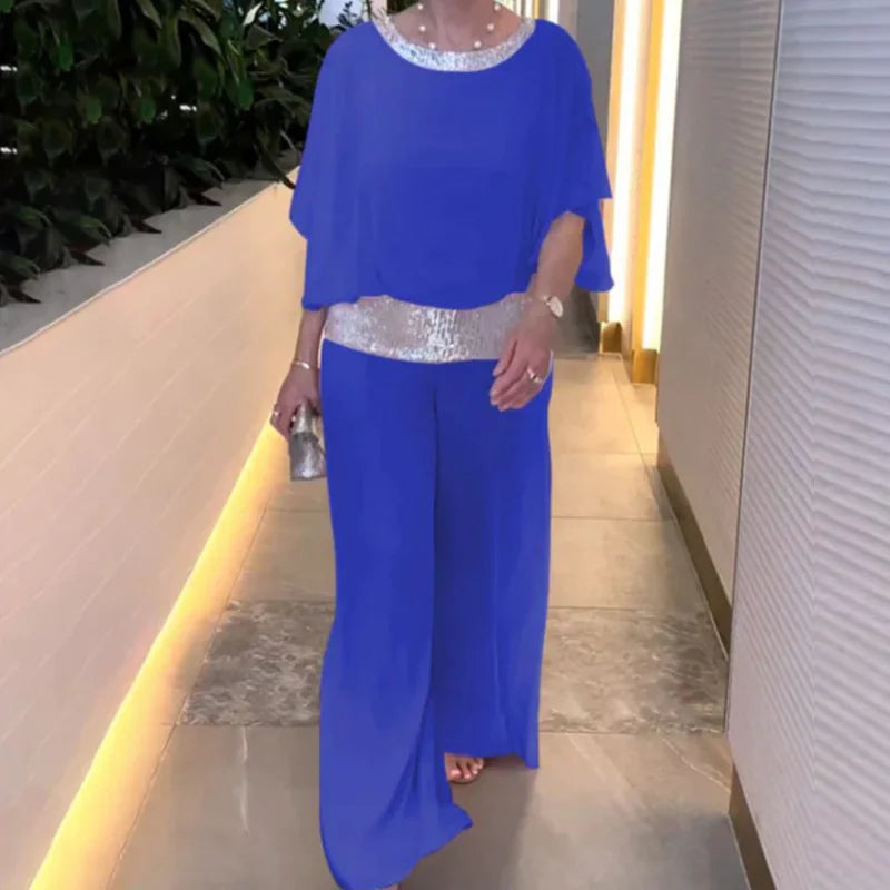Women Piece Sets Chiffon Bat Short Sleeve Tops