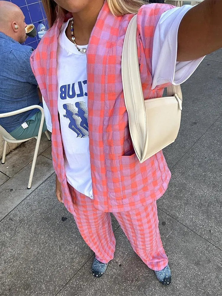Women Fashion Plaid Pants Piece Sets Loose Sleeveless - pant / S / VIP Price is backordered and will ship as soon as it is back in stock.