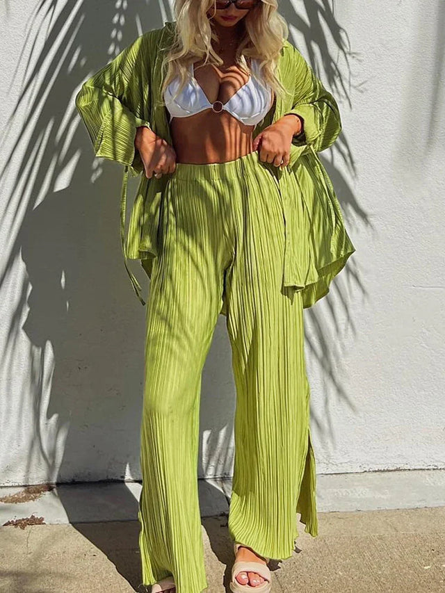 Women Two-Piece Pleated Pants Suits Casual Chic