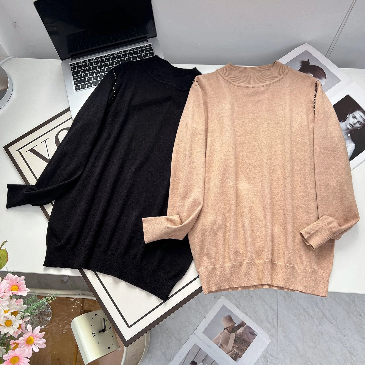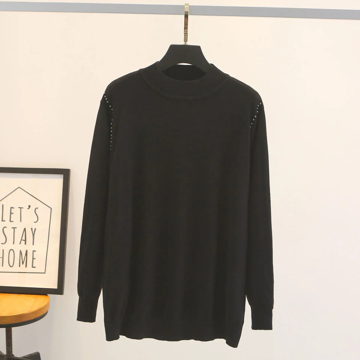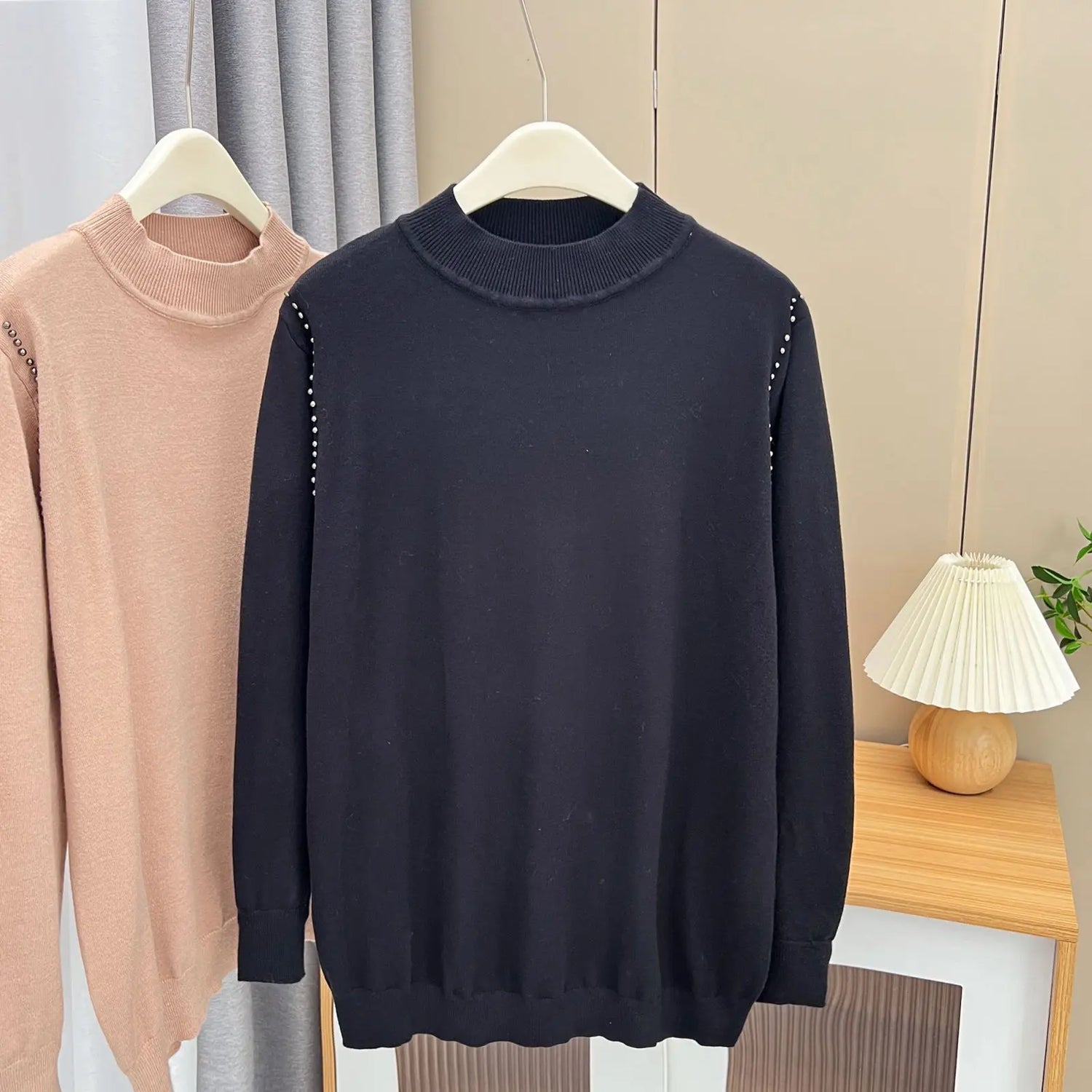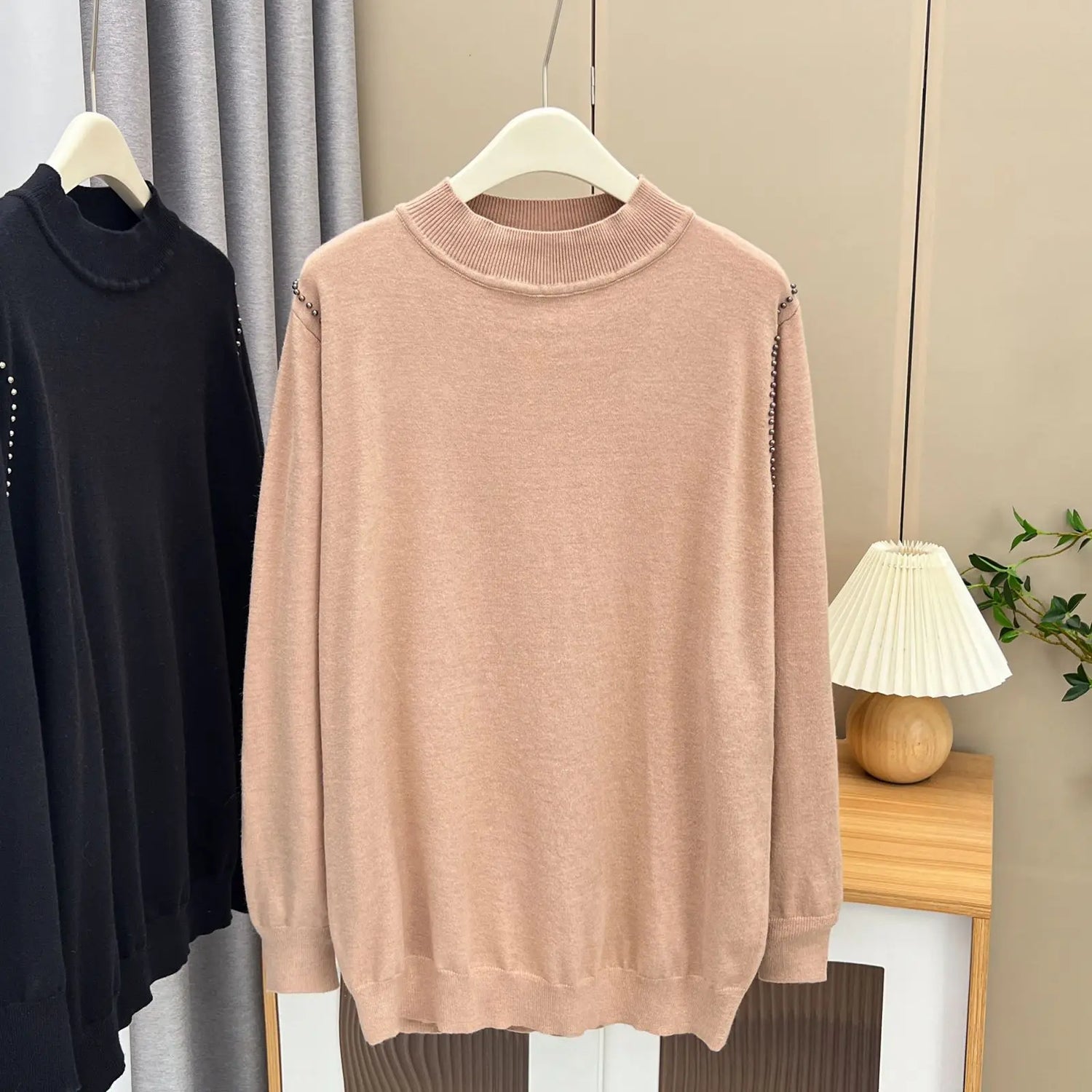 Fall Winter 100Kg Simple Temperament Beaded Mock Neck - Black / 3XL / VIP Price is backordered and will ship as soon as it is back in stock.