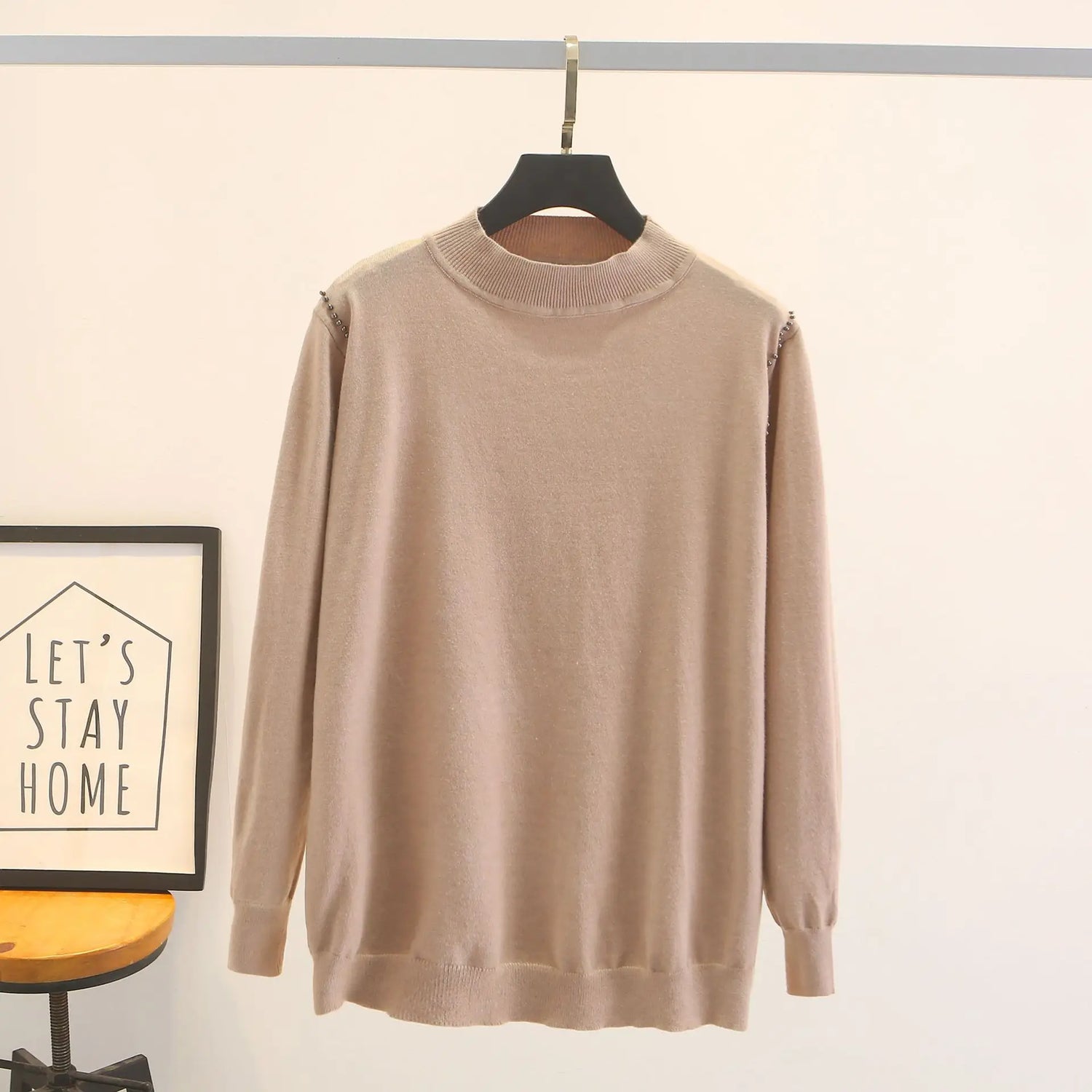 Fall Winter 100Kg Simple Temperament Beaded Mock Neck