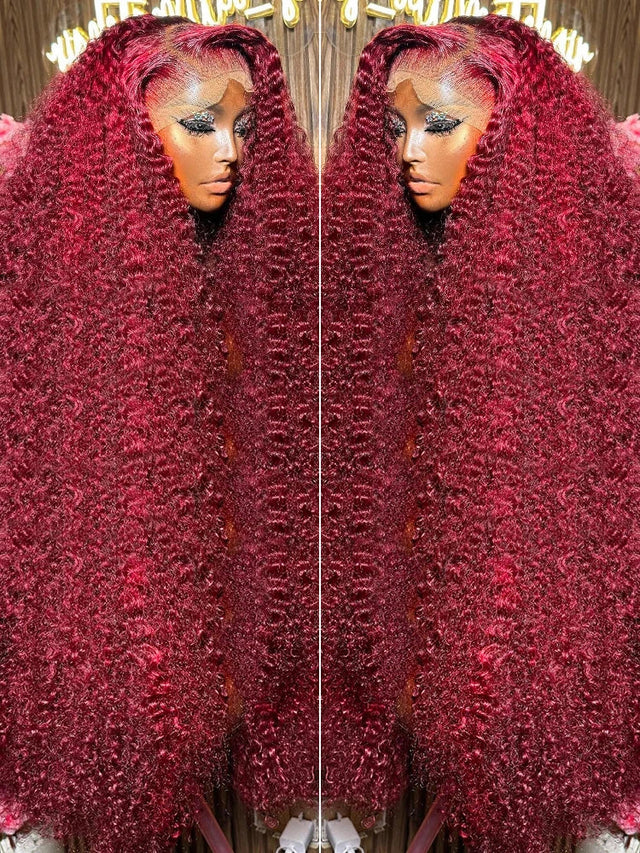 Brazilian J Burgundy X Deep Wave Frontal - 13x6 lace wig / 22INCHES / 180% is backordered and will ship as soon as it is back in stock.