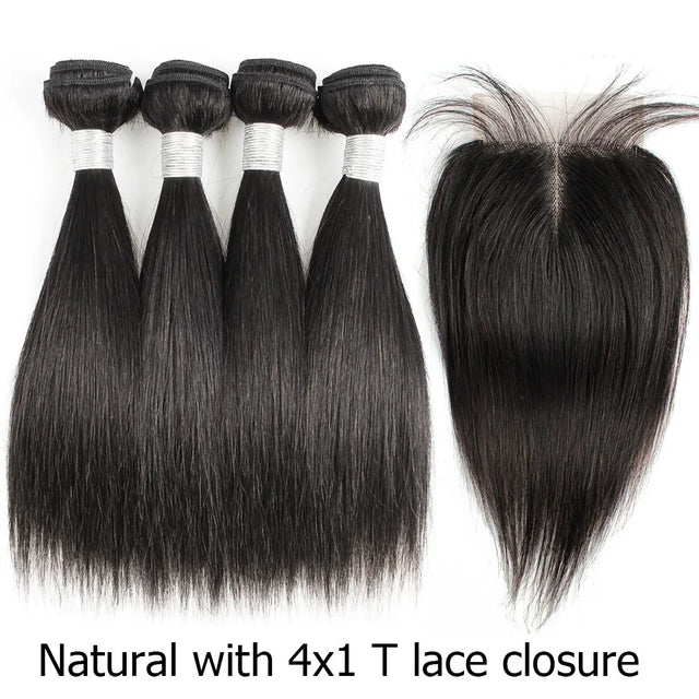Bundles With Closure Transparent X T Lace - Brown n 4x1 T Lace / Remy Human Hair / CHINA is backordered and will ship as soon as it is back in stock.