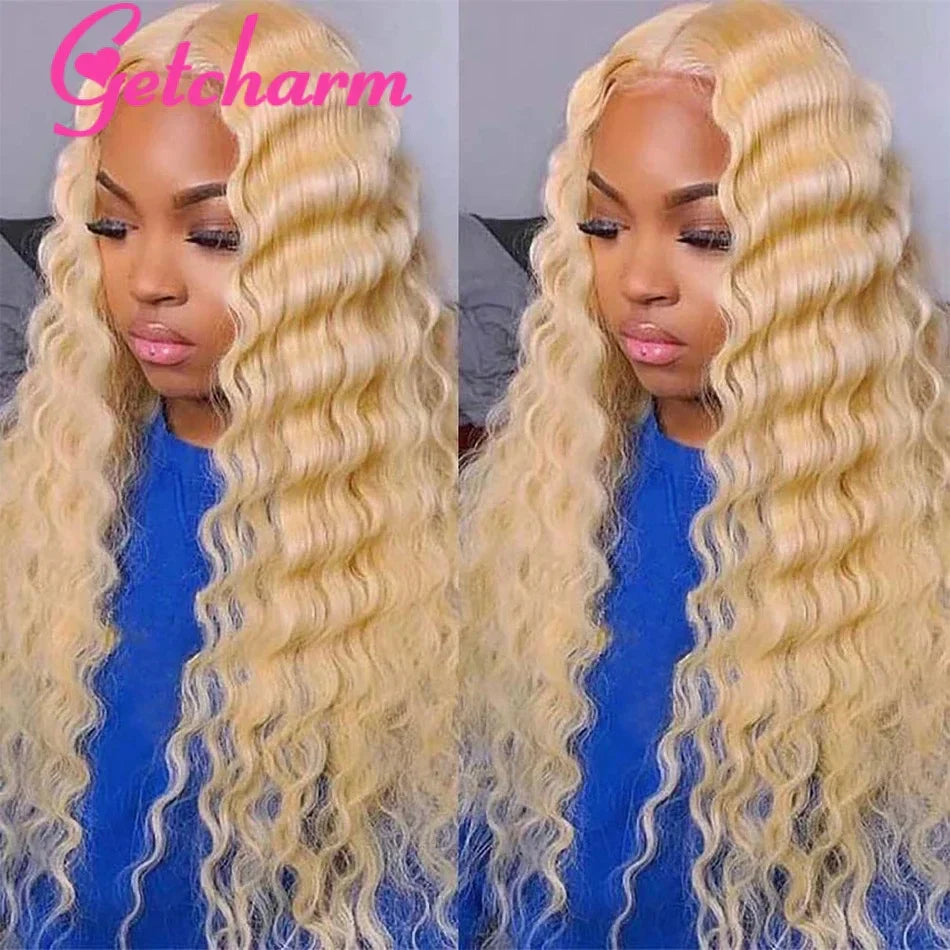 Blonde Deep Wave Frontal Wig 13X4 13X6 Transparent