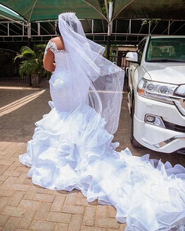 African Mermaid Wedding Dress Appliques Sheer O-Neck Long - WHITE / 50cm / CHINA is backordered and will ship as soon as it is back in stock.
