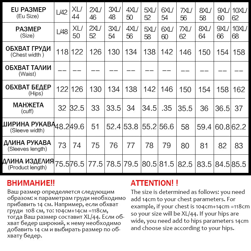 RU Size : 48 50 52 54 56 58 60 62 64 66 68