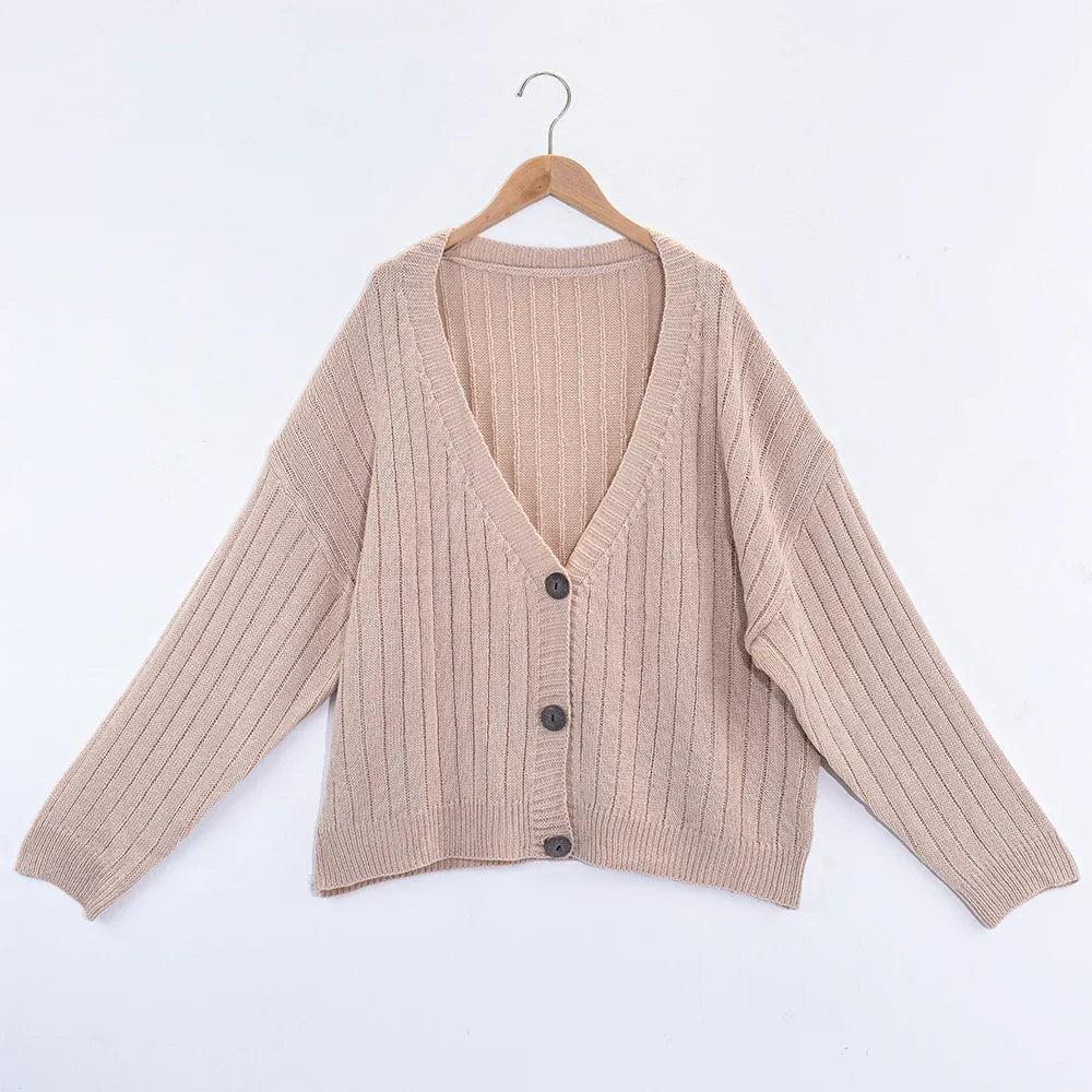 Autumn Winter V Neck Sweater Cardigan New Solid - Khaki / 0XL / VIP Price is backordered and will ship as soon as it is back in stock.
