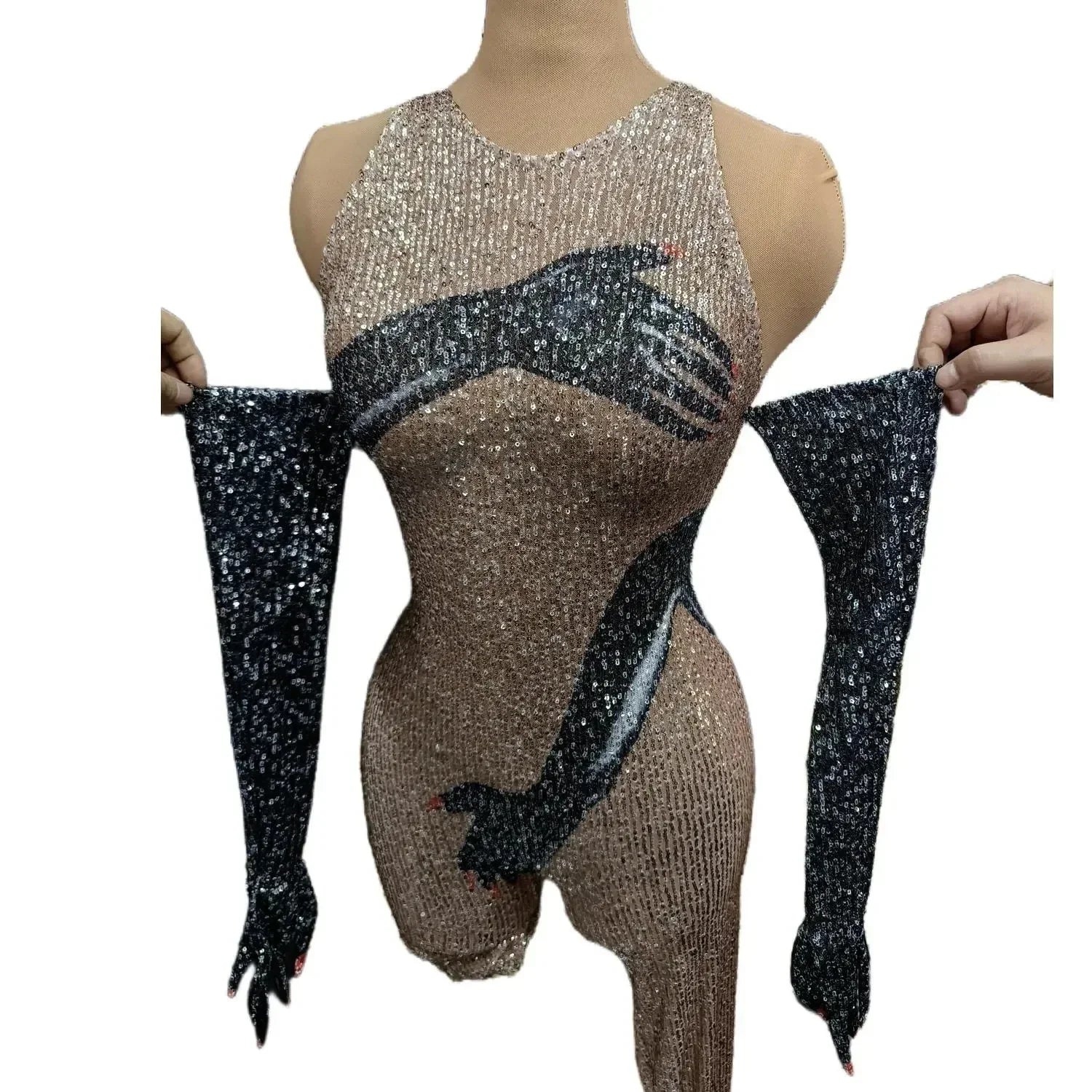 Black Hands Touch Shinny Body Sexy Women Jumpsuit