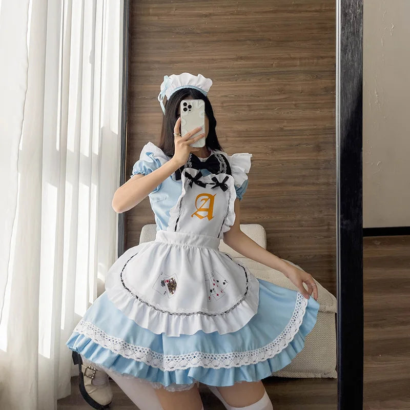Blue Alice Playing Cards Lolita Maid Dress Costumes