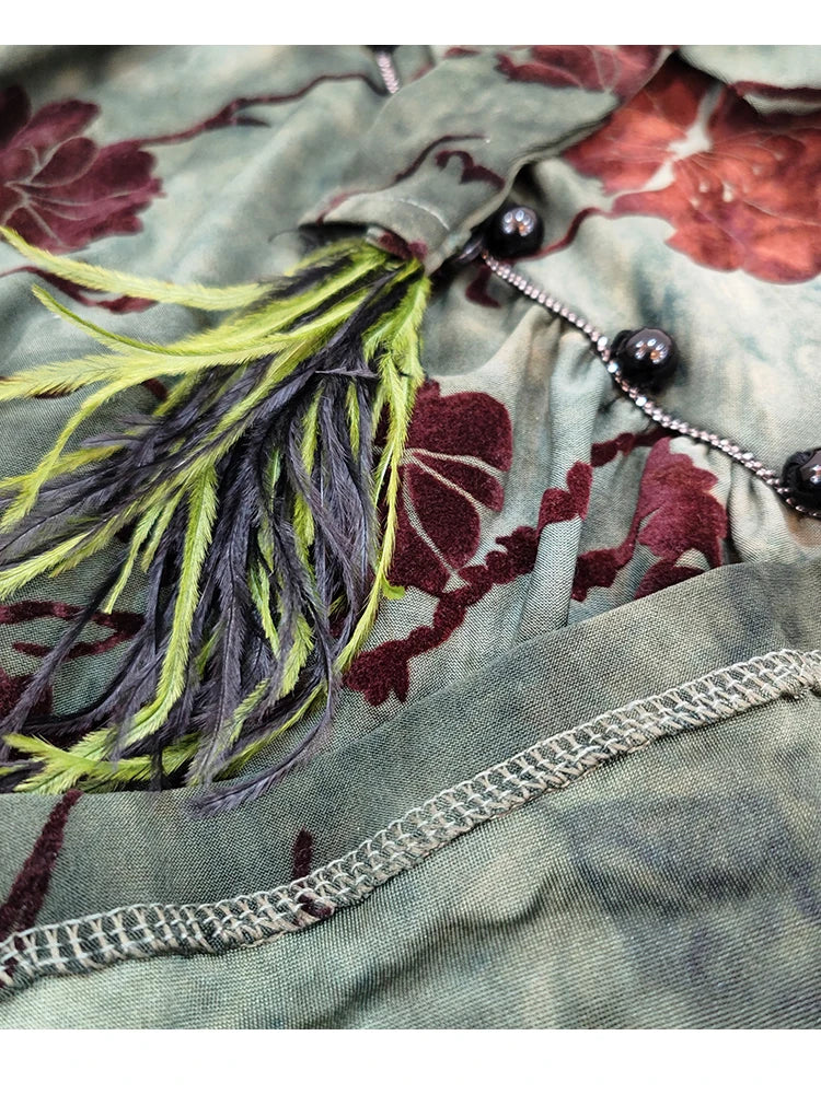 Cheerart Vintage Green Floral Bodycon Cheongsam Dress Long - S / VIP Price is backordered and will ship as soon as it is back in stock.