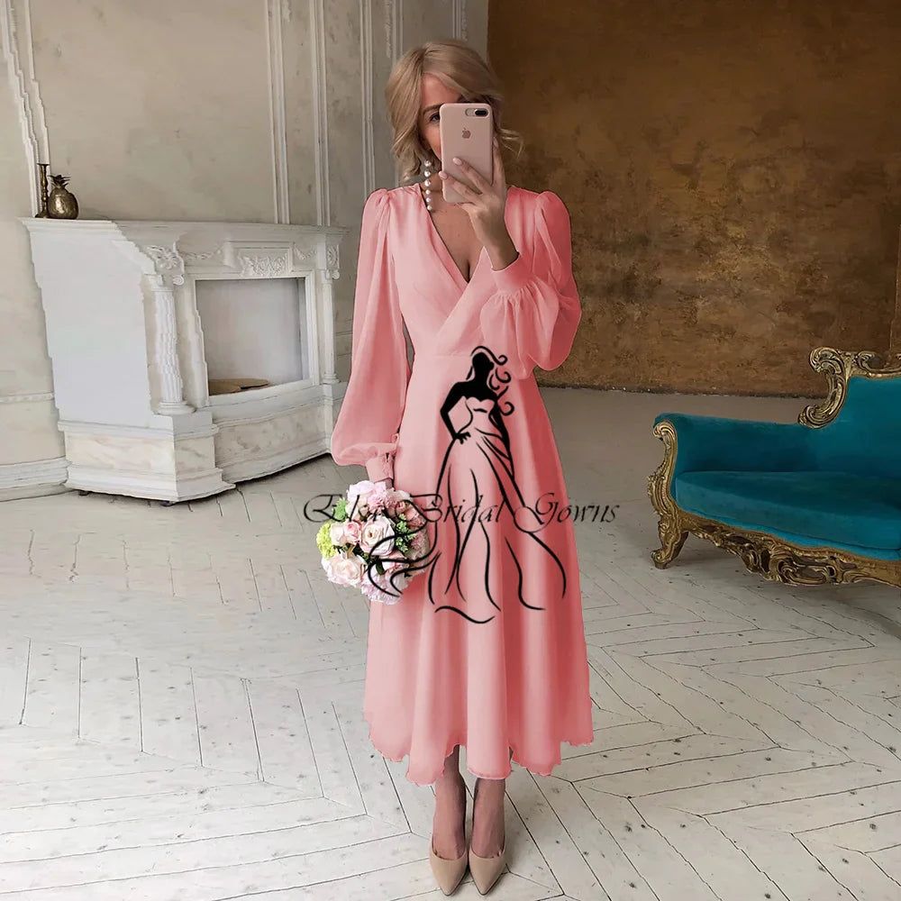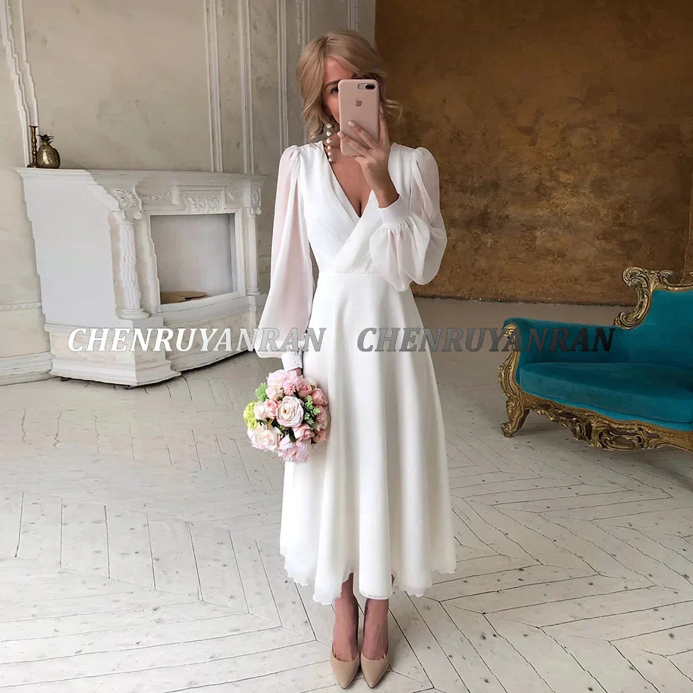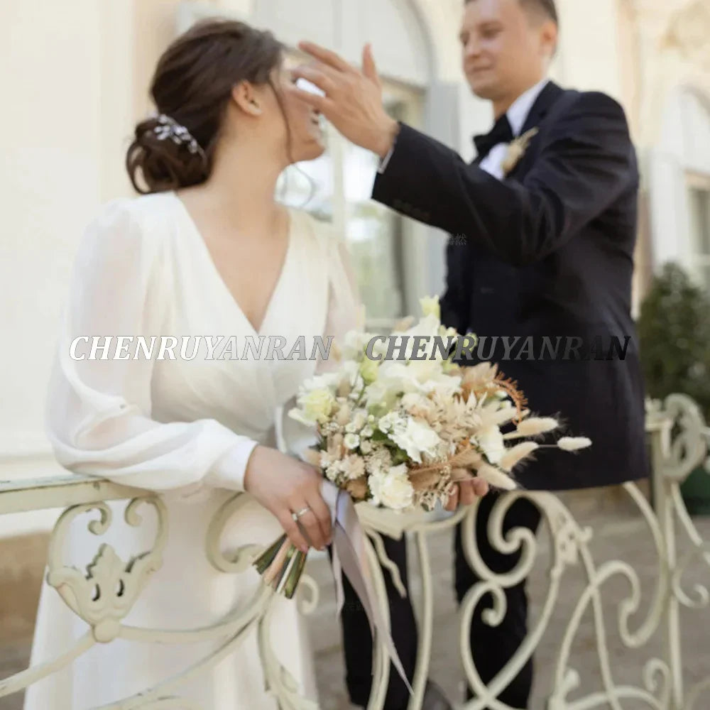 Chiffon Wedding Dresses For Women V-Neck Long Sleeves
