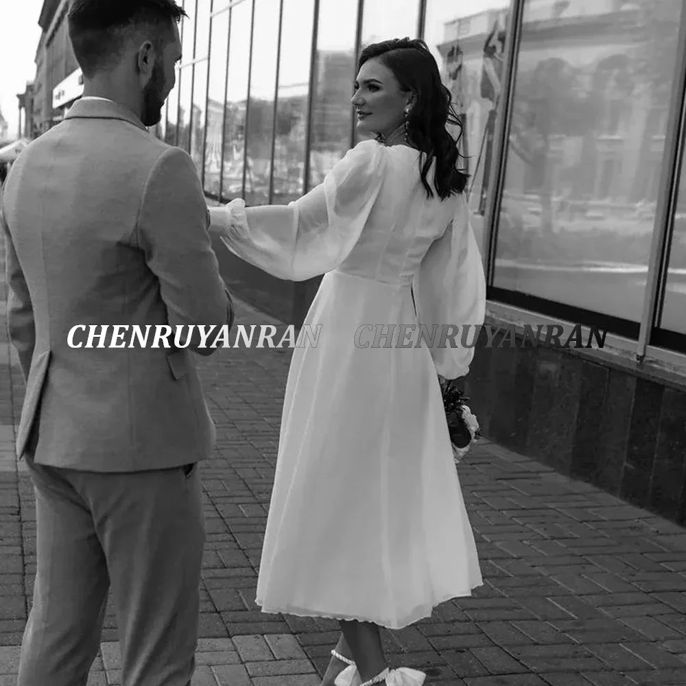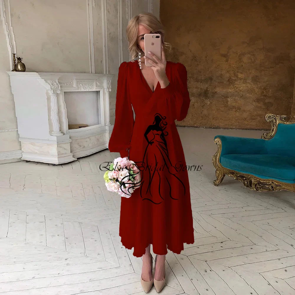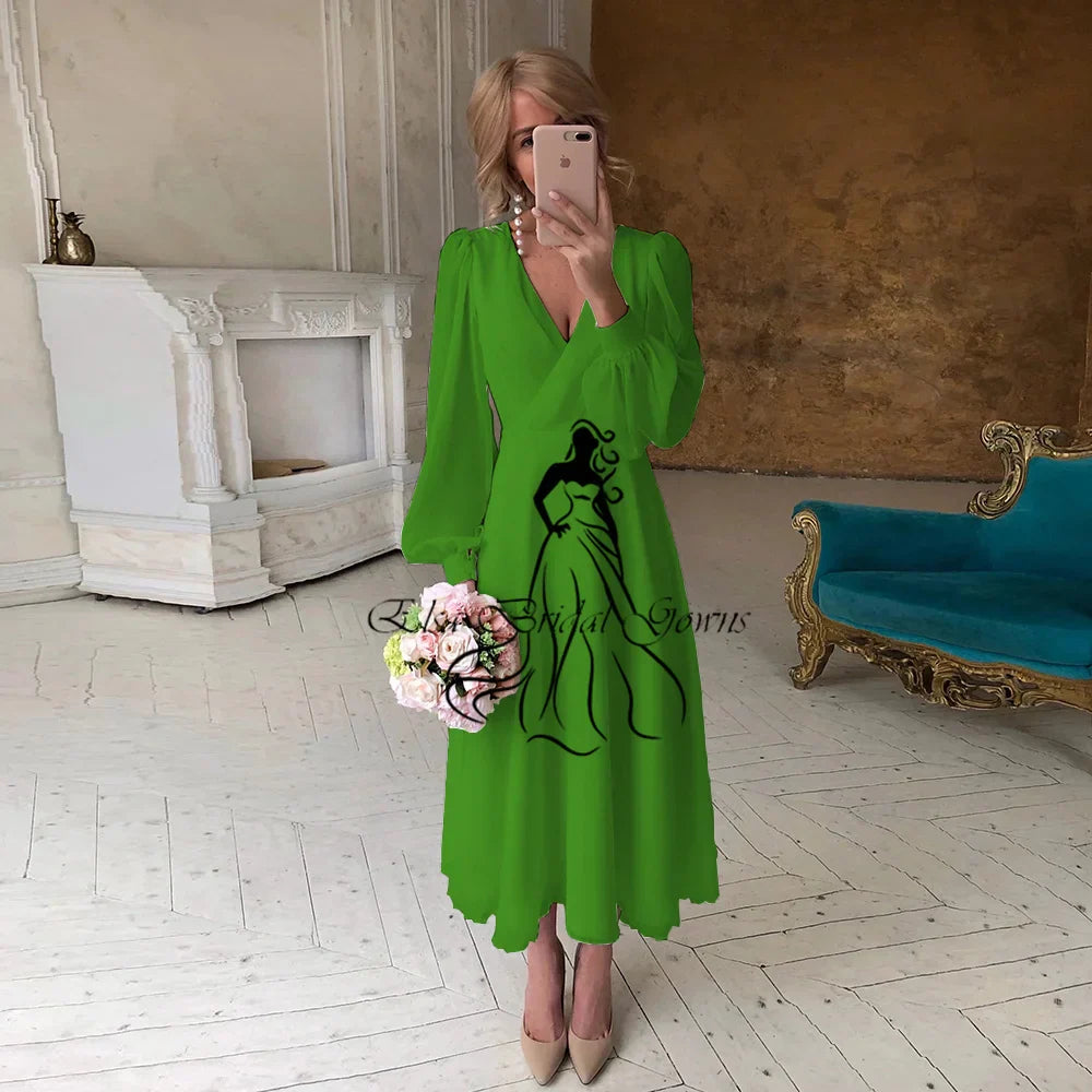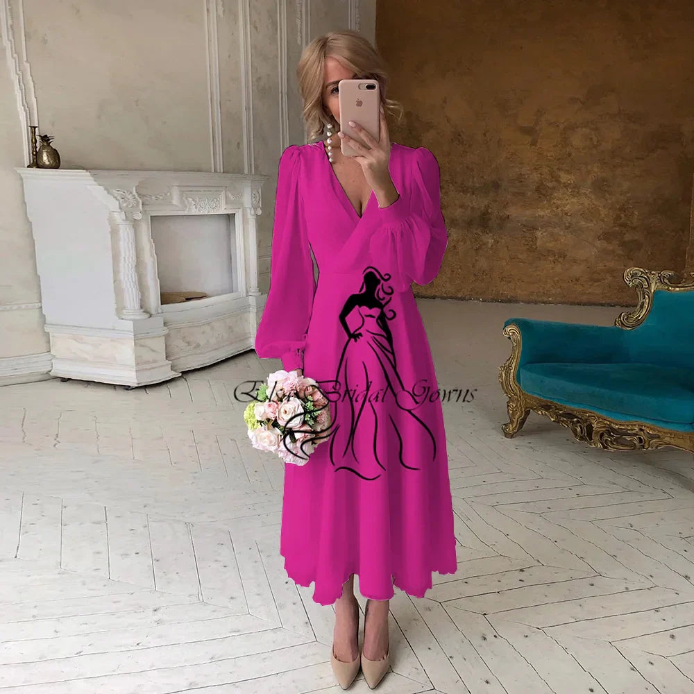Chiffon Wedding Dresses For Women V-Neck Long Sleeves