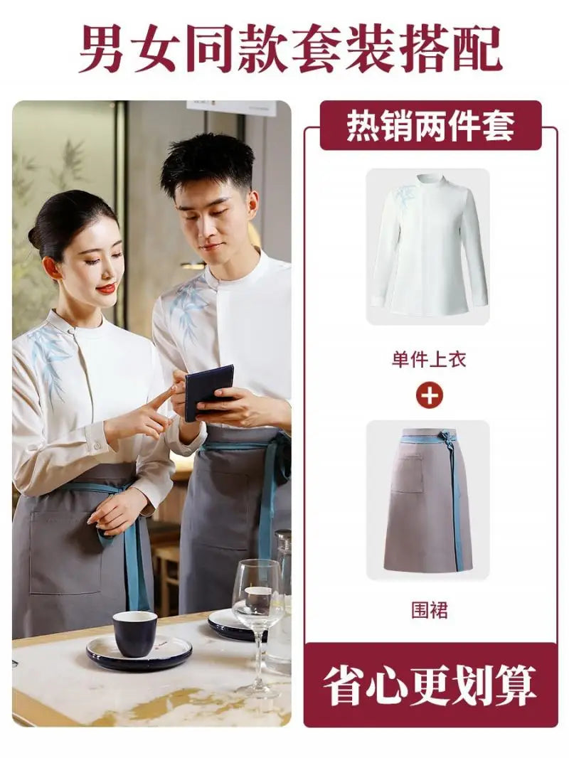 Chinese Style Restaurant Waiters Elegant Working Clothes Women - white / S / VIP Price is backordered and will ship as soon as it is back in stock.