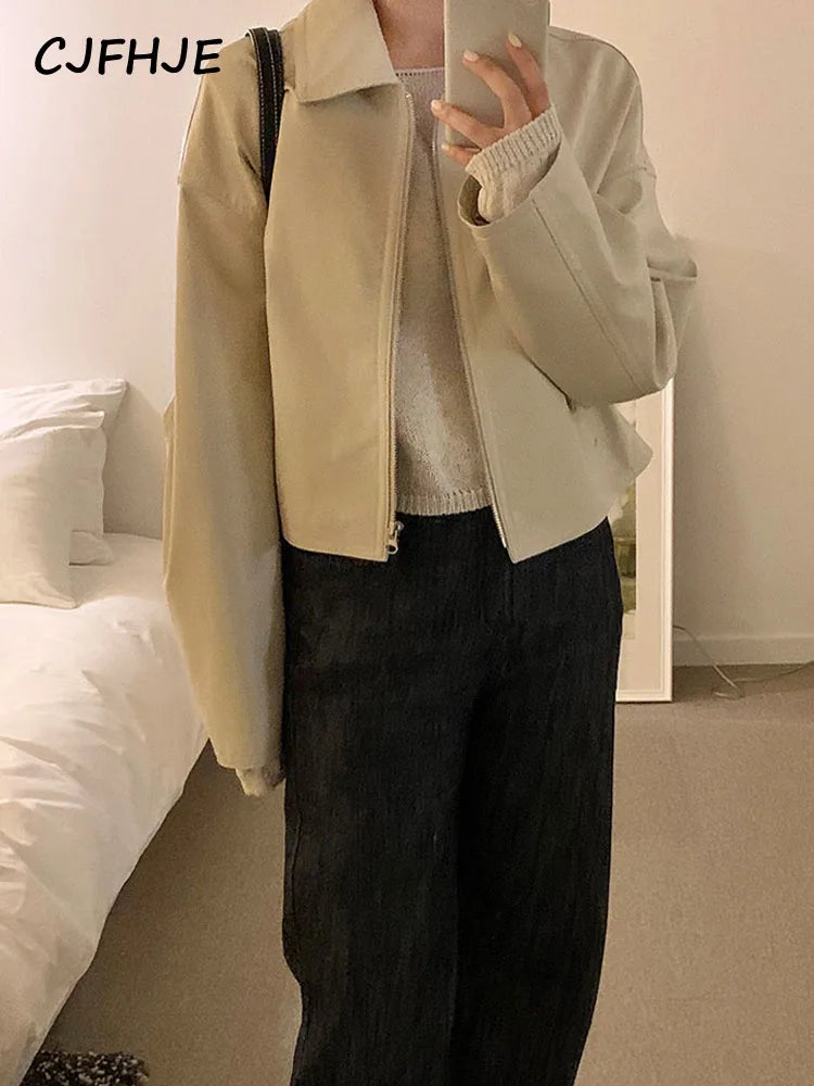 Cjfhje Fashion Elegant Leather Jacket Women Winter Streetwear - Apricot leather jack / L / VIP Price is backordered and will ship as soon as it is back in stock.