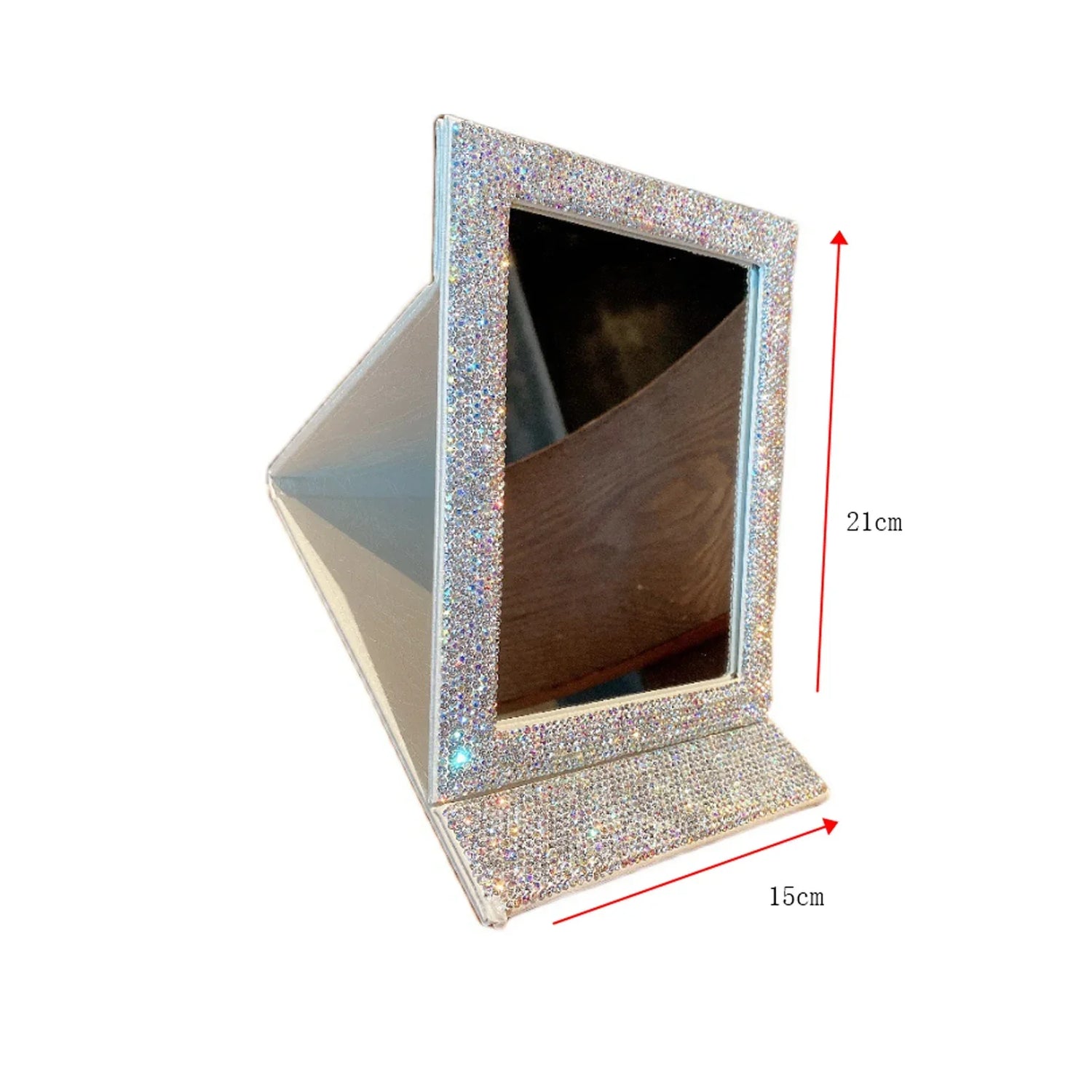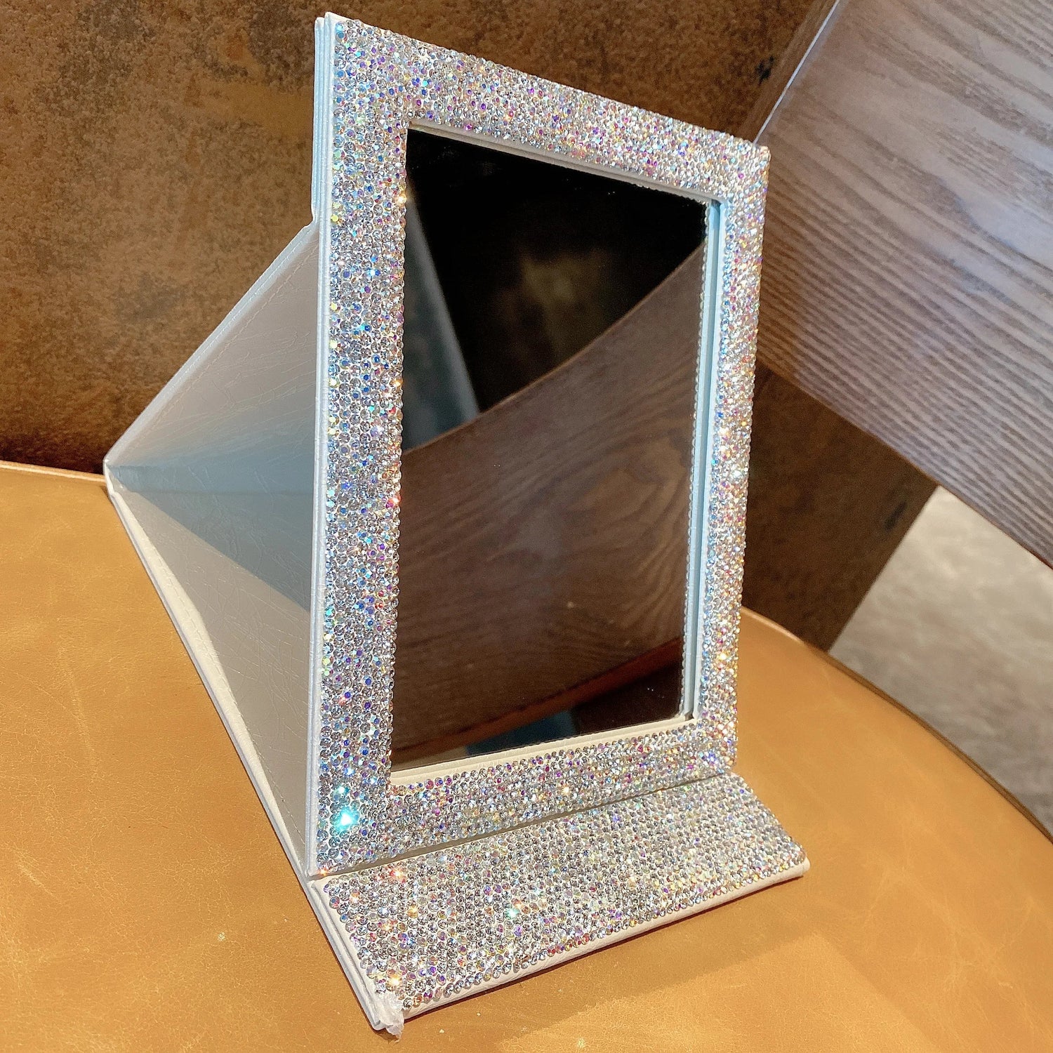 Diamond-Encrusted HD Folding Mirror with Glitter Powder Leather