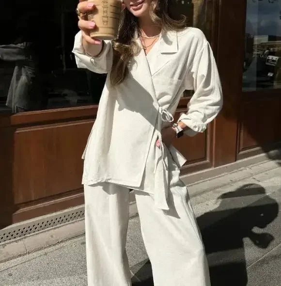 Elegant Lace Up Shirts Pants Sets Women Casual