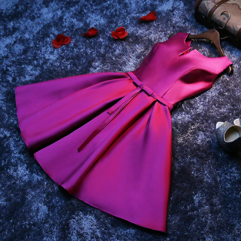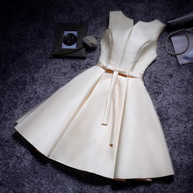 Elegant Satin Prom Evening Guest Mini Dresses For