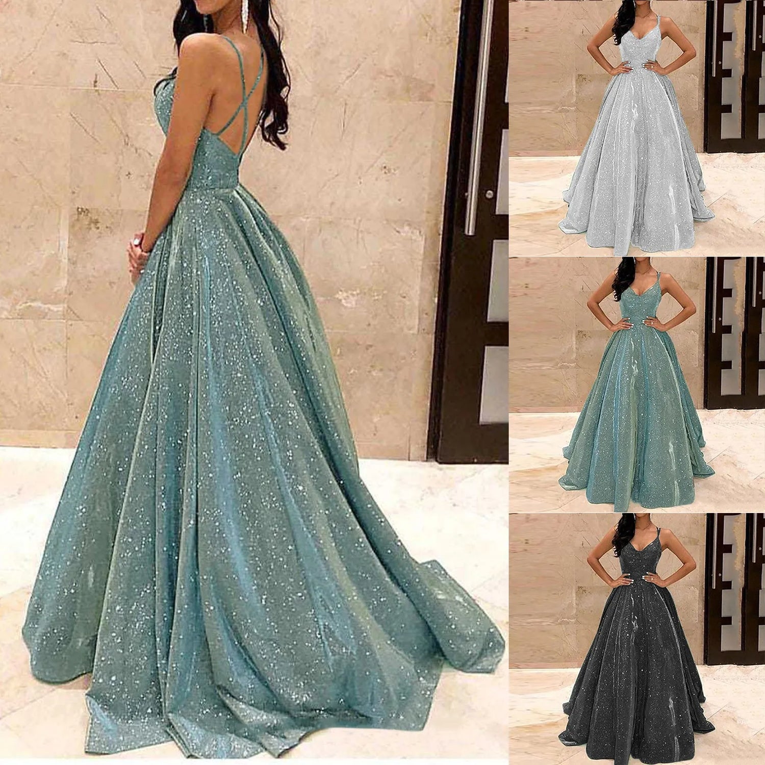 Fall Dresses For Women Spaghetti Strap Sleeveless Glitter - Green / XL / CN is backordered and will ship as soon as it is back in stock.