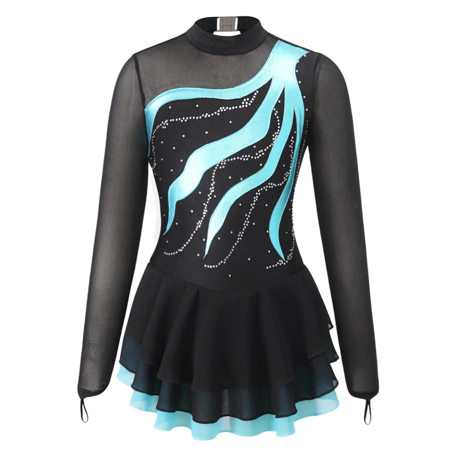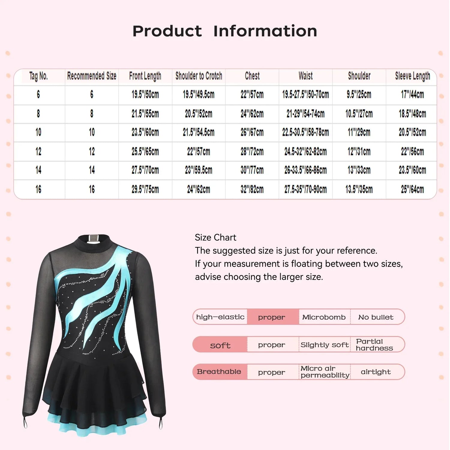 Figure Ice Skating Dress Kids Girls Long Sleeve