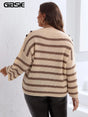 Gibsie Drop Shoulder Button Detail Striped O-Neck Sweater