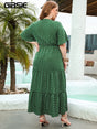 Gibsie Polka Dot V-Neck Butterfly Sleeve Dress Women
