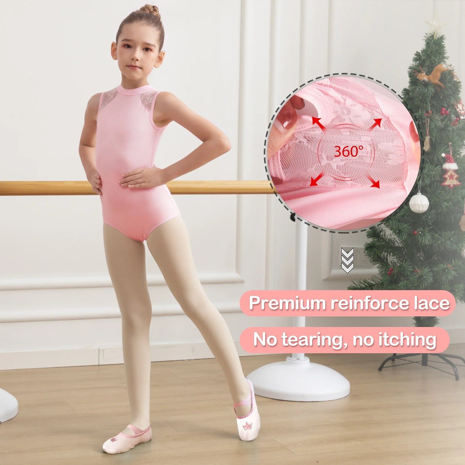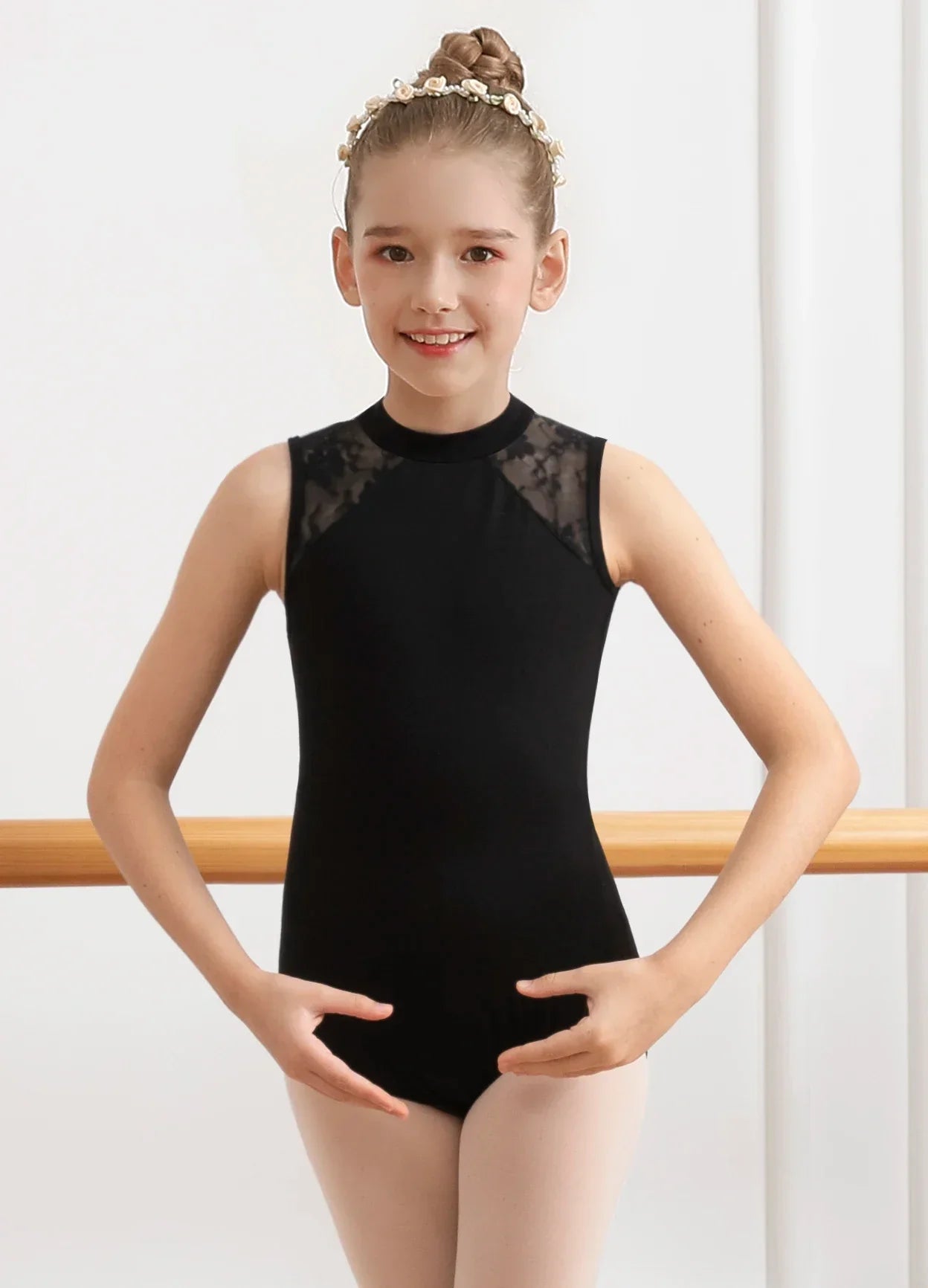 Girls Dance Leotard Lace Neck Dance Wear Top,Back