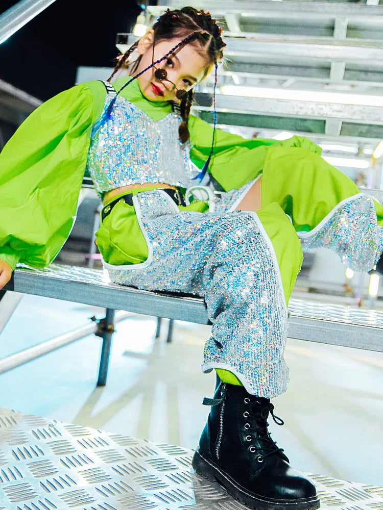 Girls Hip Hop Dancing Clothing Kid Sequins Stitching