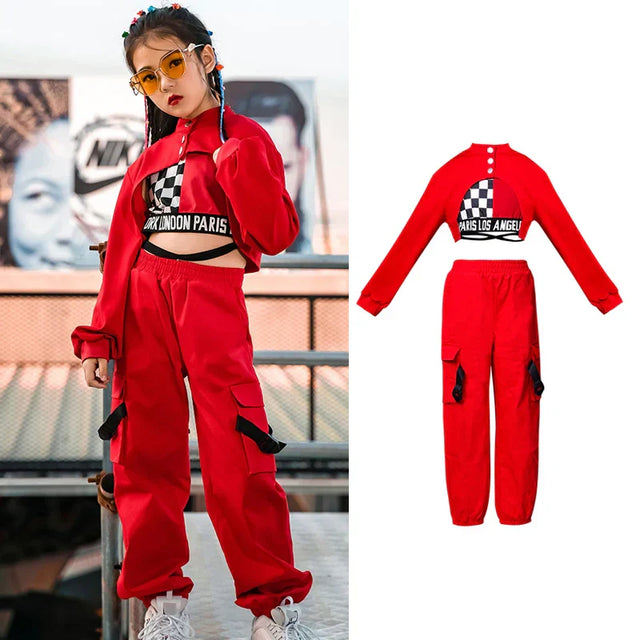 Girls Street Dance Wear Clothes Jazz Dancing Costumes - Red tops / 150cm / VIP Price is backordered and will ship as soon as it is back in stock.