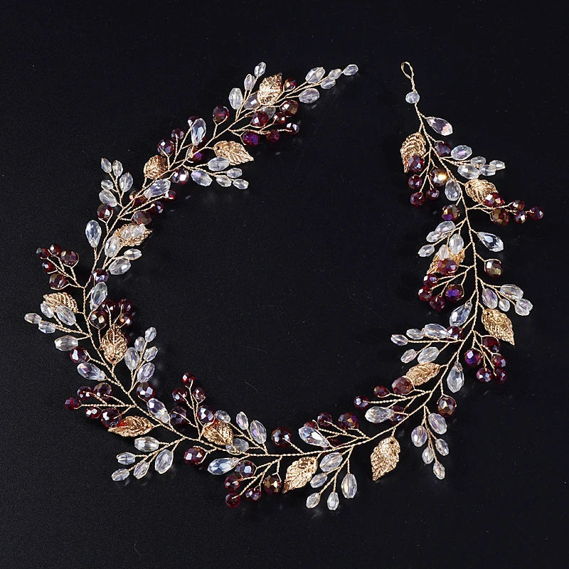 Gold Wedding Headpieces For Bride Handmade Bridal Headband - PURPLE / VIP Price is backordered and will ship as soon as it is back in stock.
