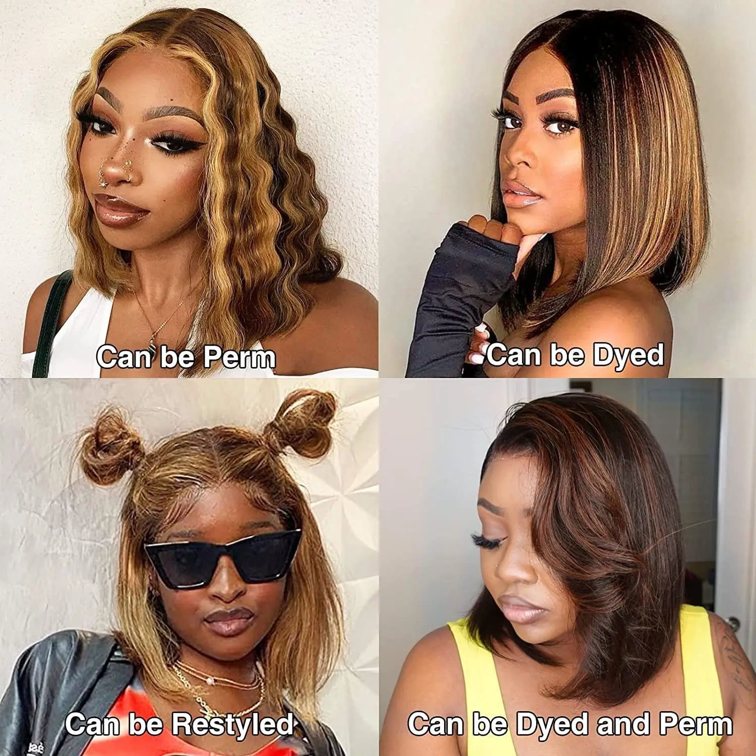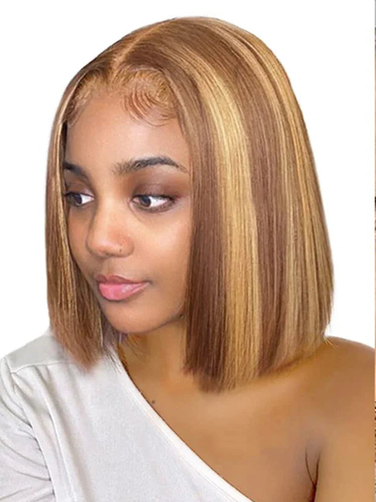 Honey Blonde Ombre Lace Front Bob Wig 180% Human Hair