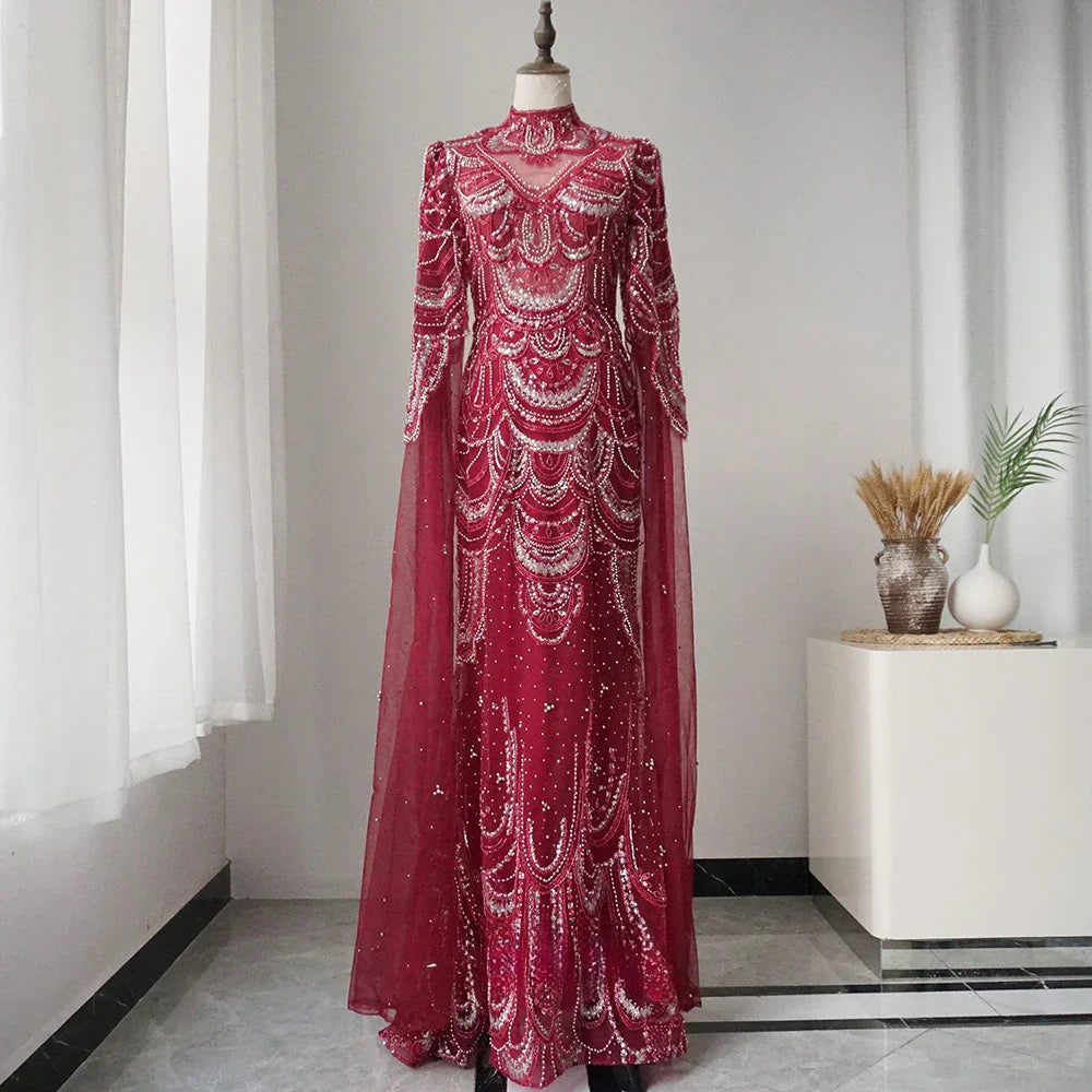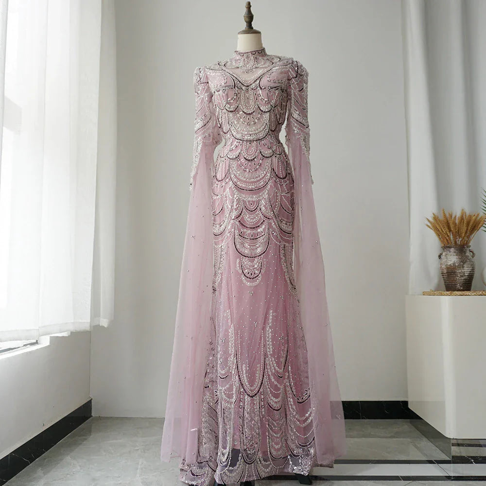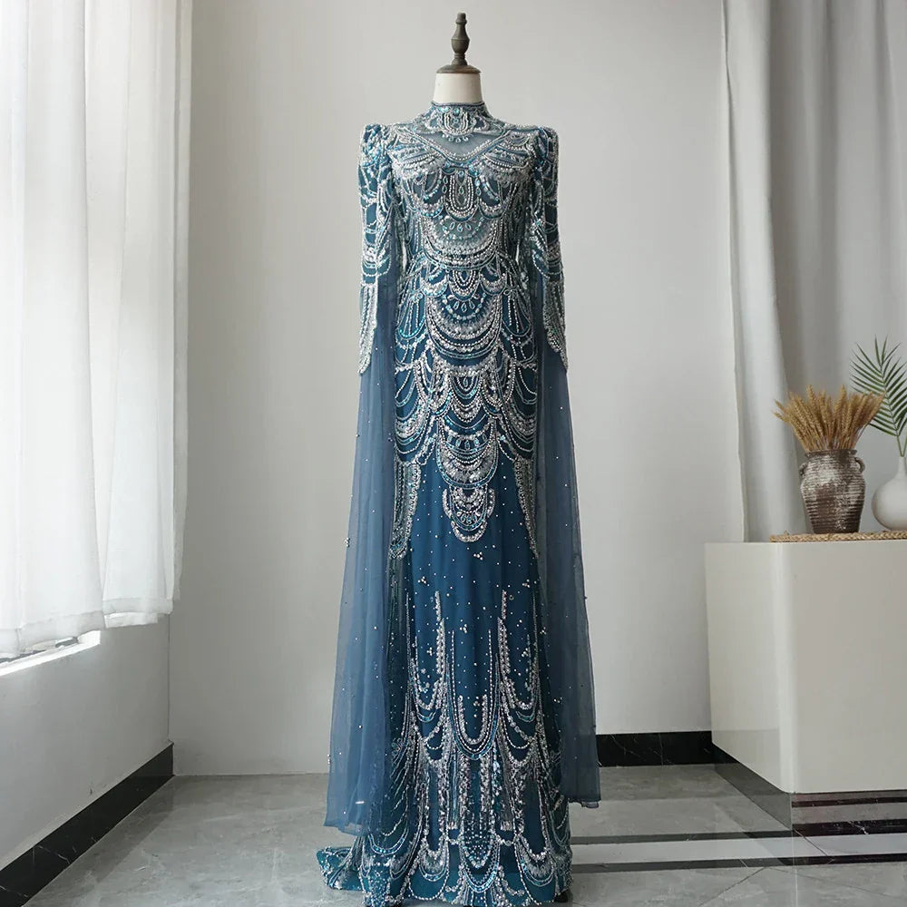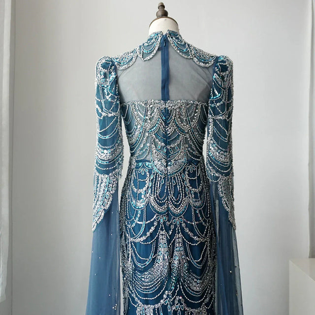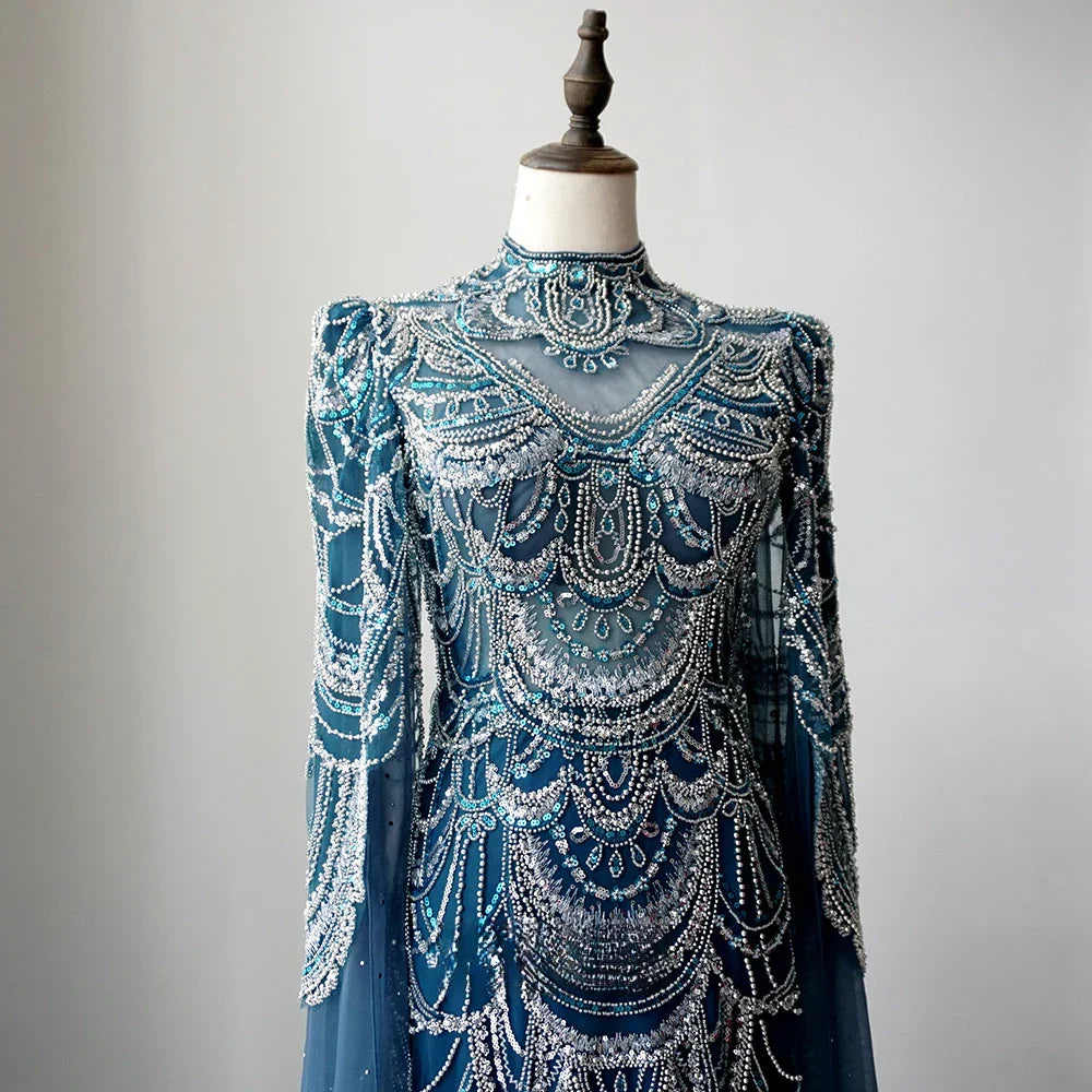 Hot Sale Arabic Blue Mermaid Lace Beaded Formal