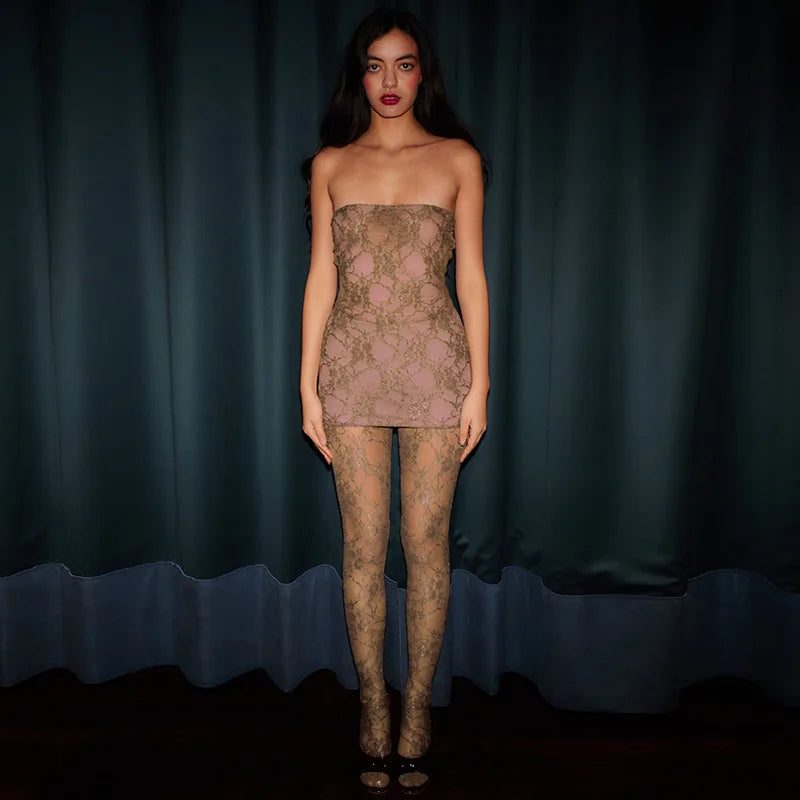 Hugcitar Mesh Strapless Flower Print Sexy Bodycon Mini