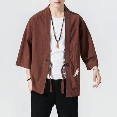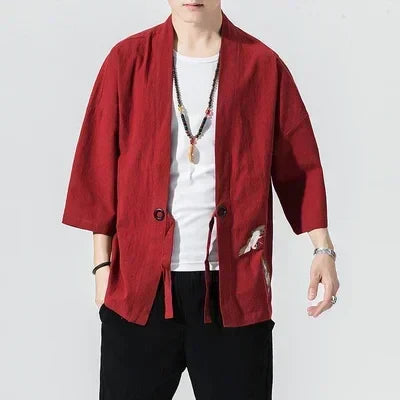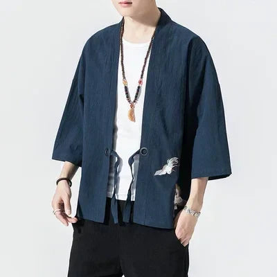 Japanese Kimono Men Cardigan Streetwear Traditional Japanese Samurai