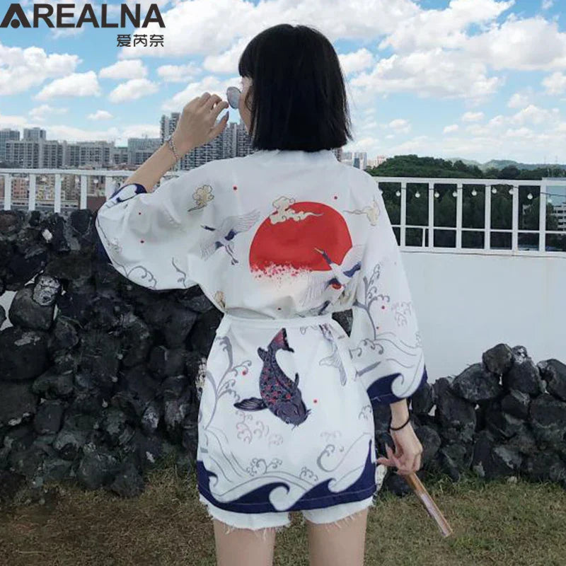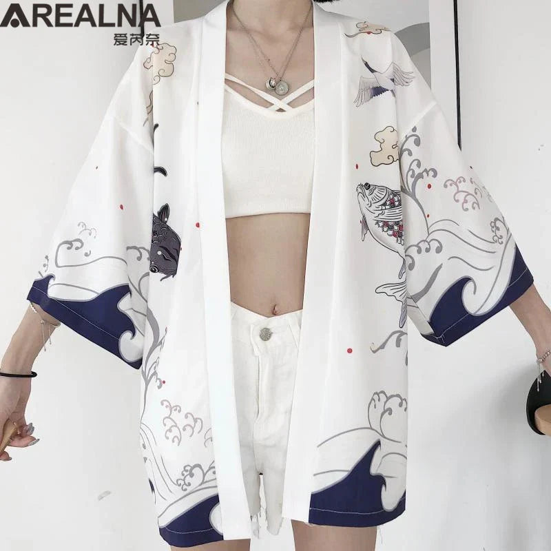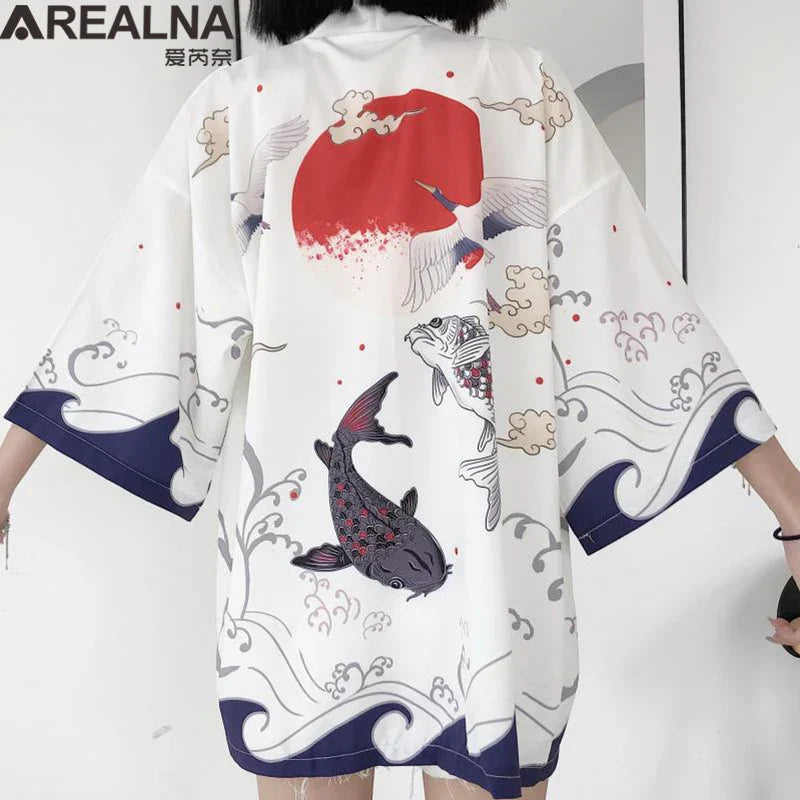 Japanese Kimono Traditional Clothing Crane Carp Anime Kimono - 556 (18) / One Size / VIP Price is backordered and will ship as soon as it is back in stock.