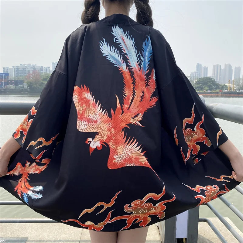 Japanese Kimono Traditional Clothing Crane Carp Anime Kimono