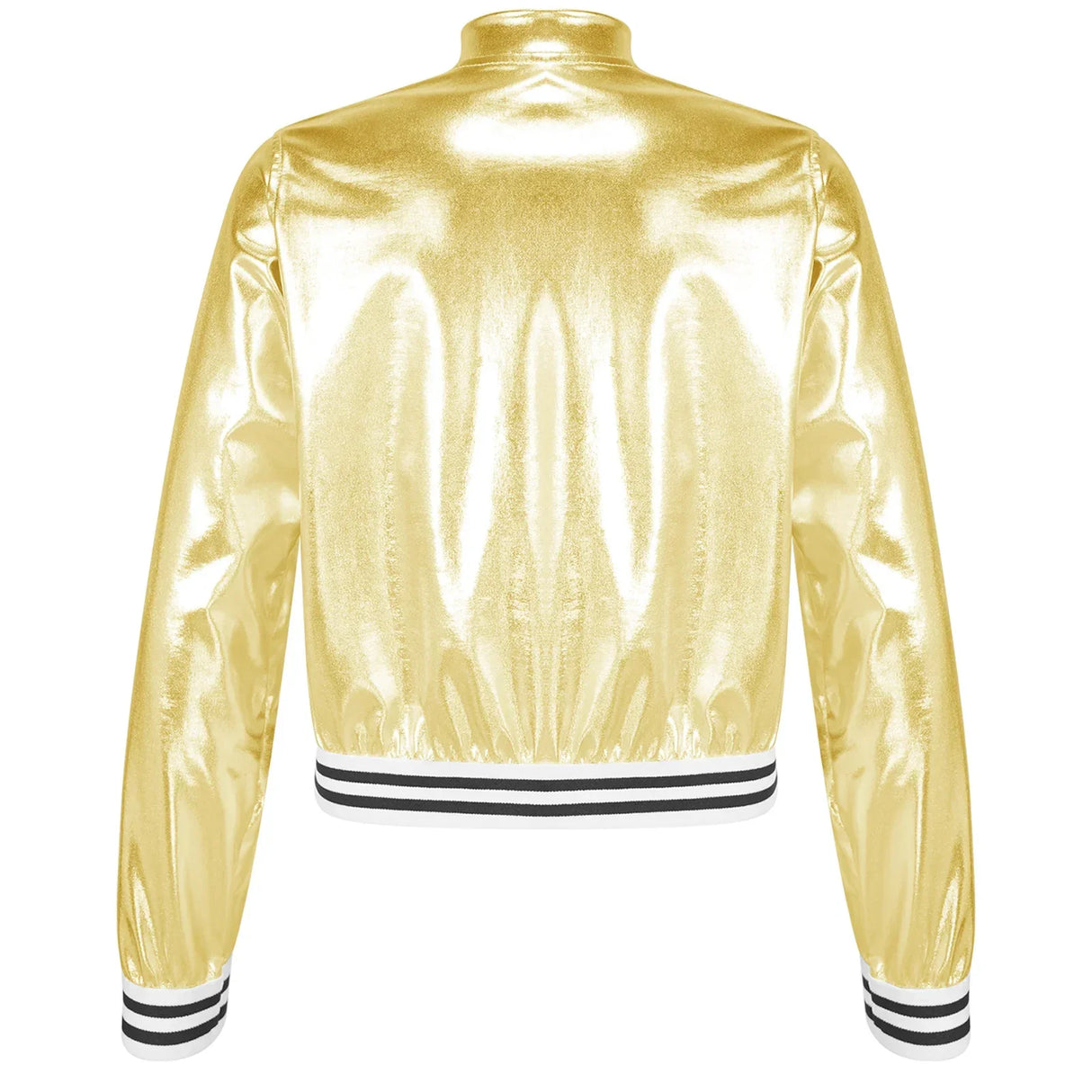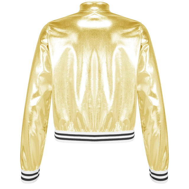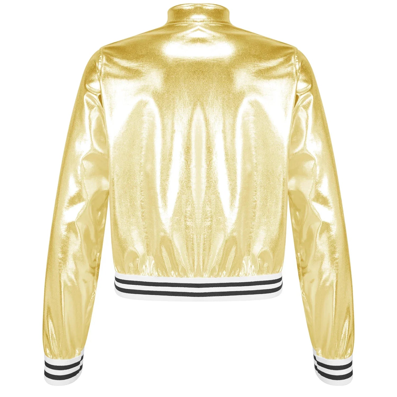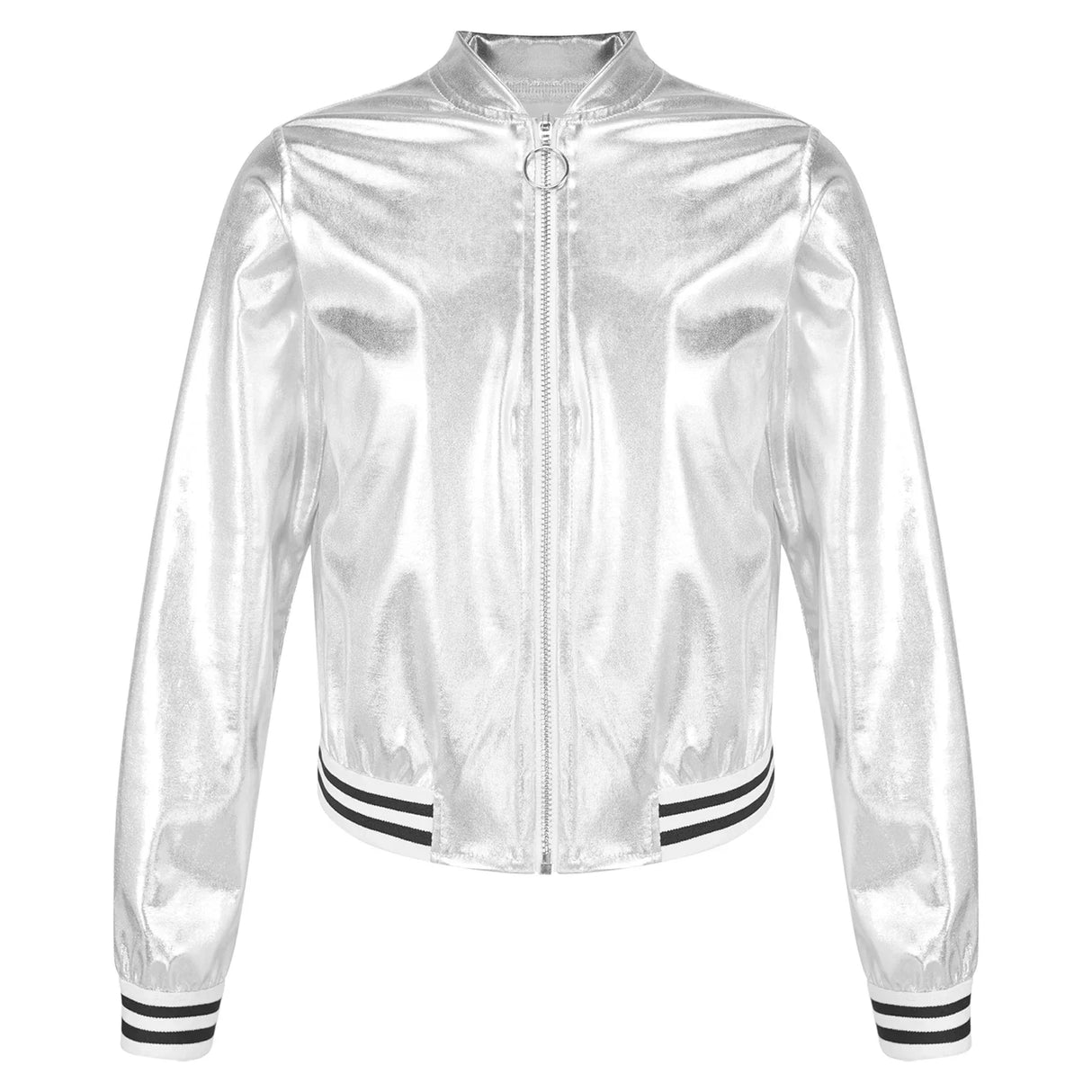 Kids Girls Shiny Baseball Jacket Bolero Disco Blazer