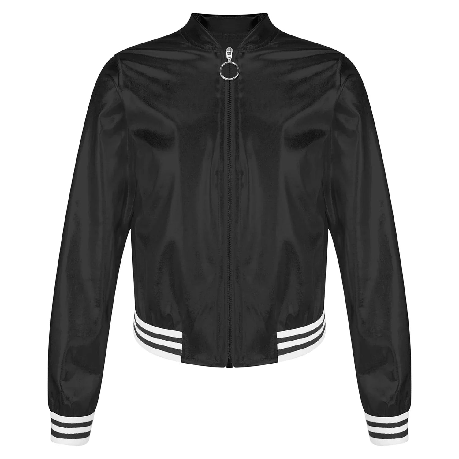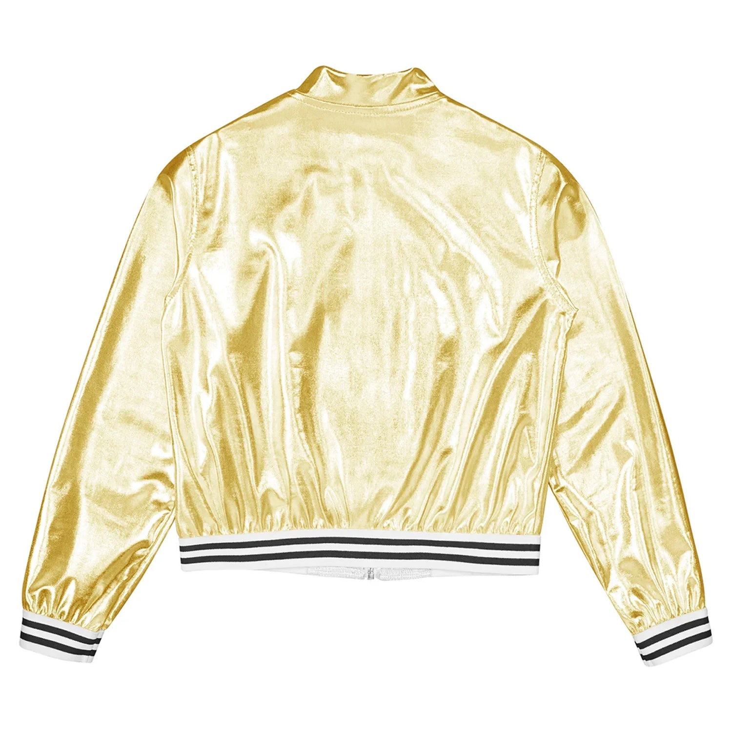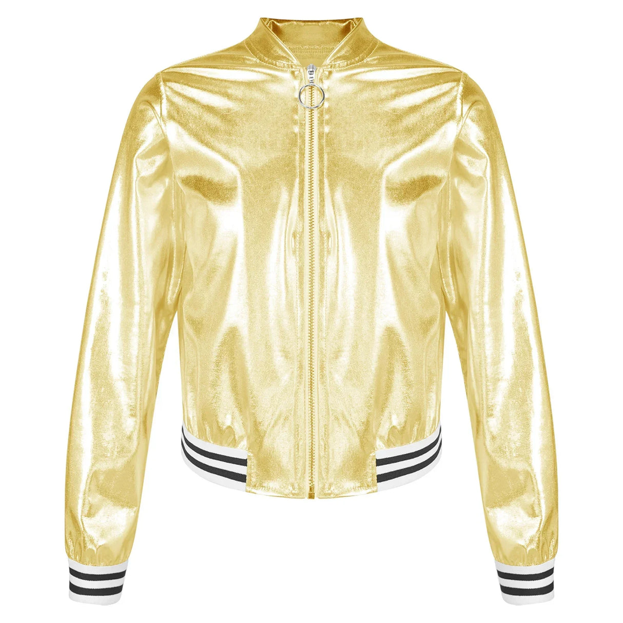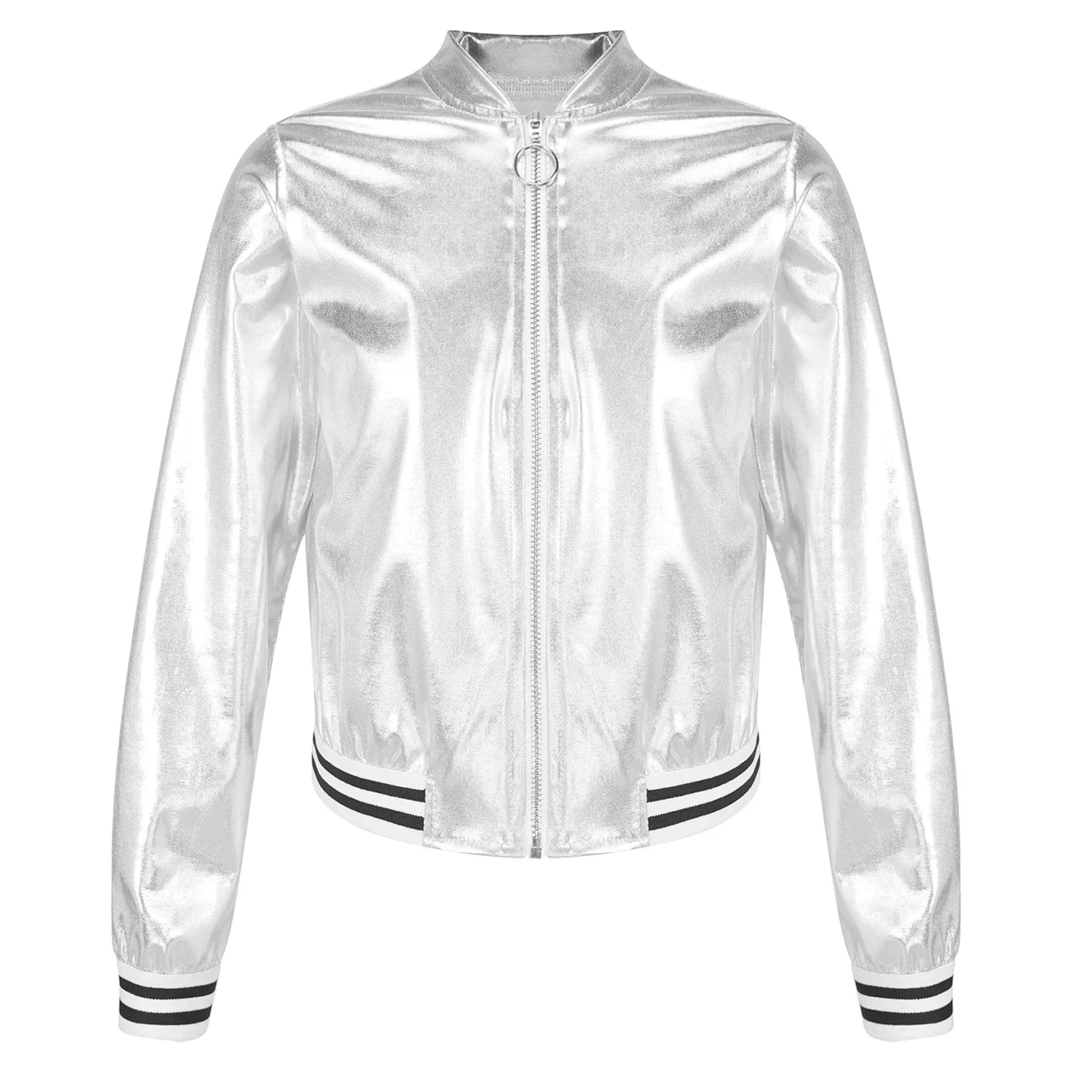 Kids Girls Shiny Baseball Jacket Bolero Disco Blazer