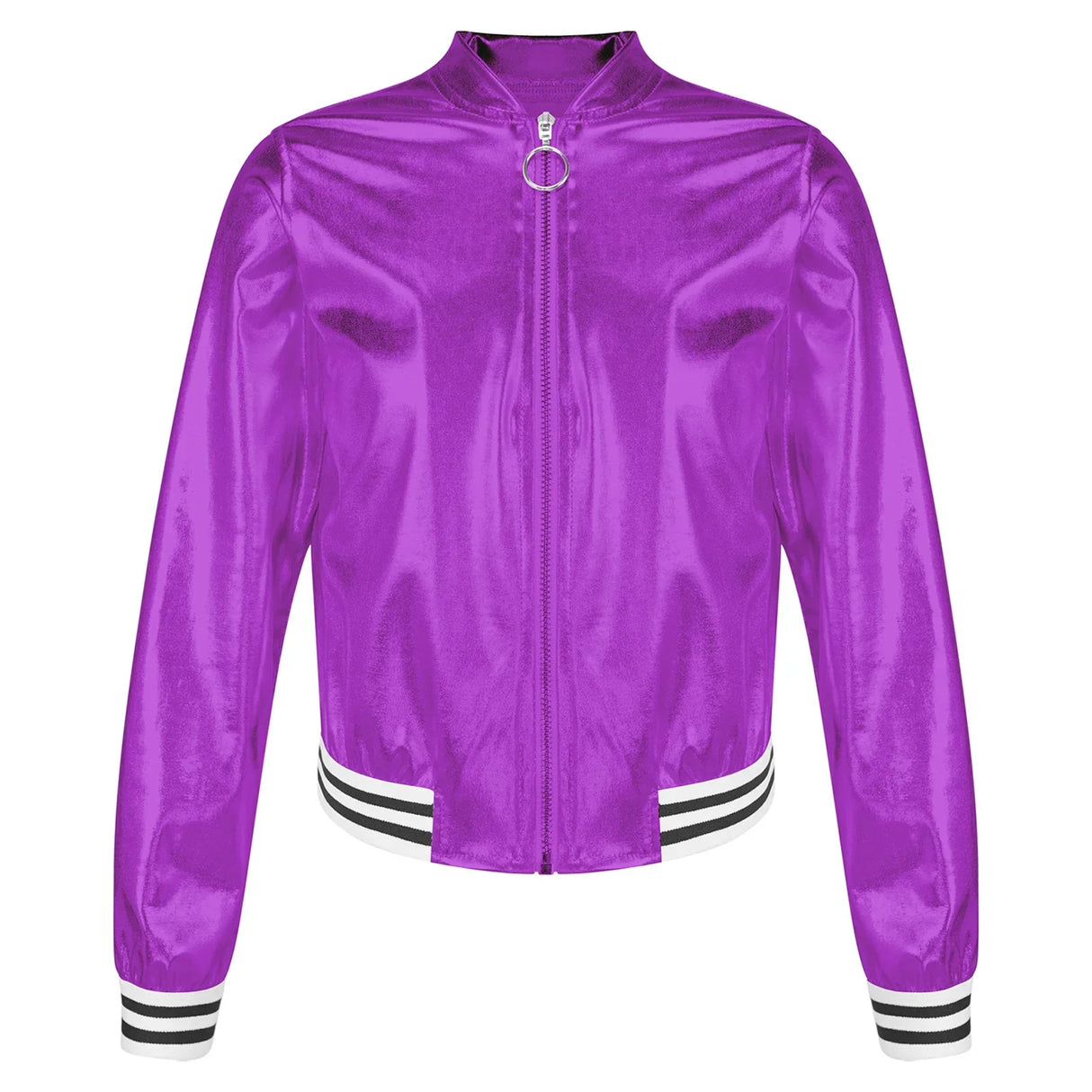 Kids Girls Shiny Baseball Jacket Bolero Disco Blazer - Purple / 16 / VIP Price is backordered and will ship as soon as it is back in stock.