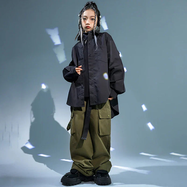 Kids Hip Hop Clothing Black Jacket Coat Casual