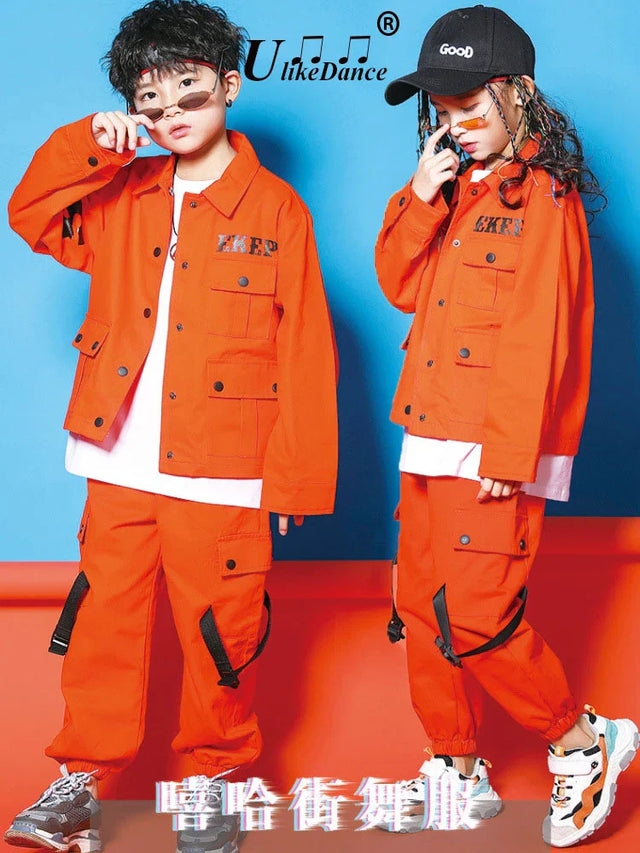 Kids Jazz Costumes Orange Long Sleeve Jacket Pants