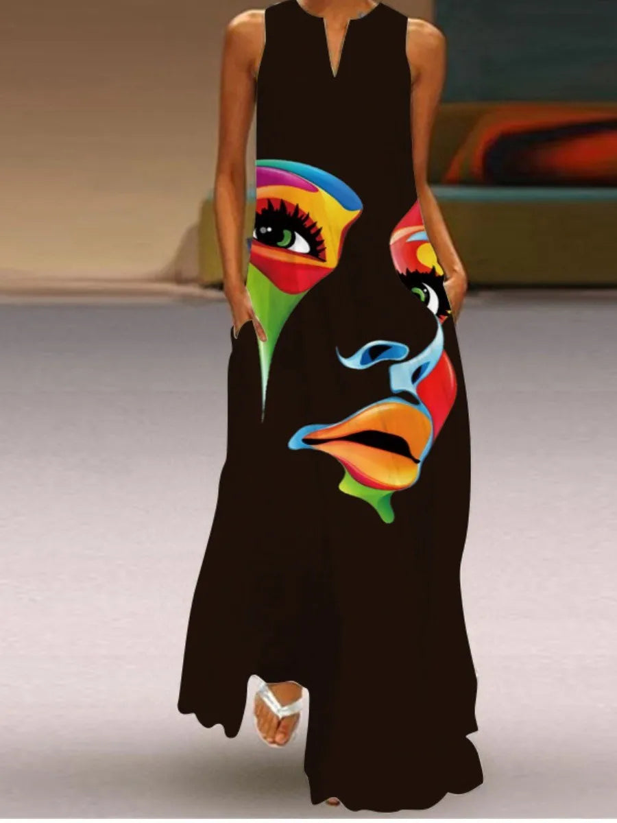 Dress Figure Print Cami Loose V Neck - Black / XXXL / CHINA is backordered and will ship as soon as it is back in stock.